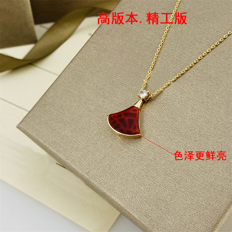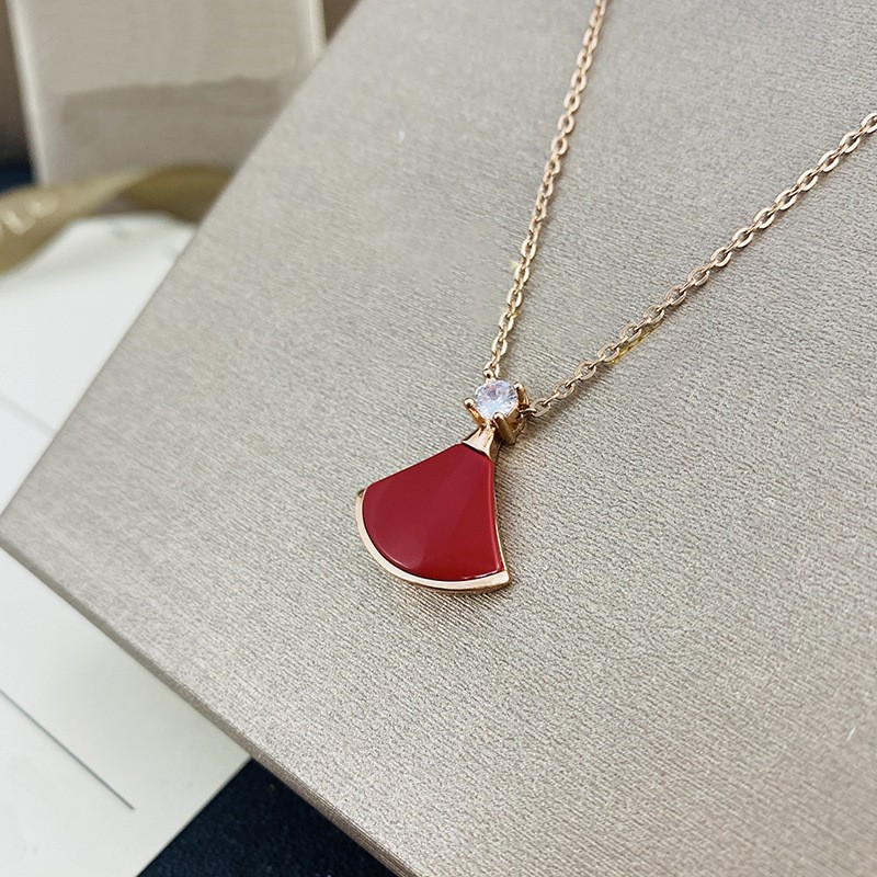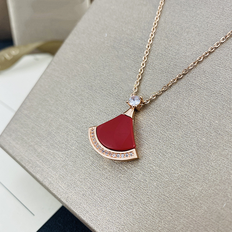Color: Big skirt double shell necklace. Rose agate Red. White Diamond