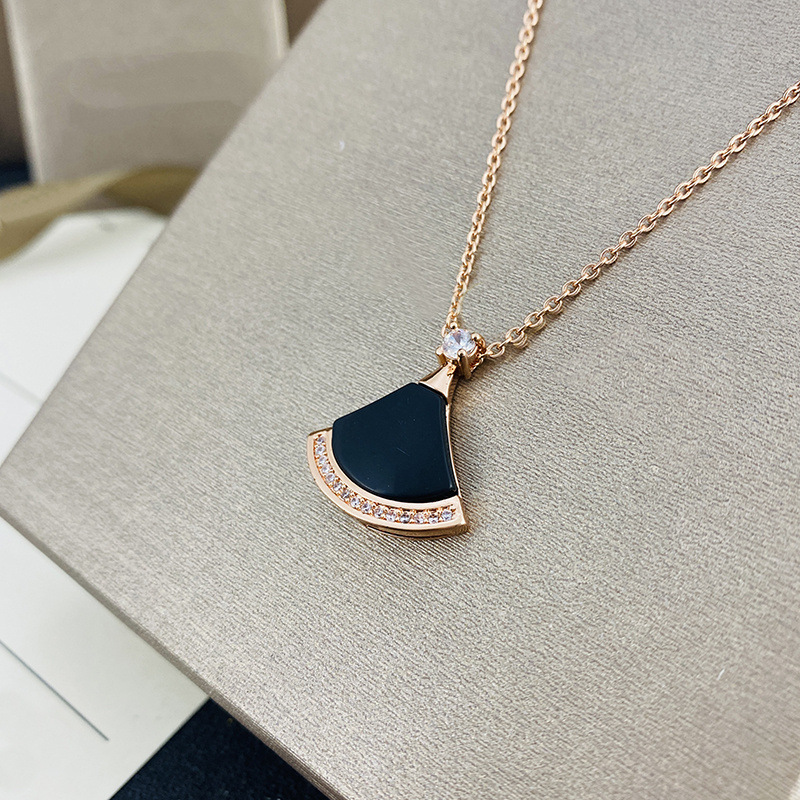 Color: Big skirt double shell necklace. Rose Black. White Diamond