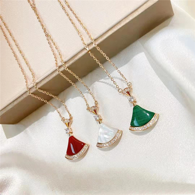Color: Big skirt double shell necklace. Rose Green. White Diamond