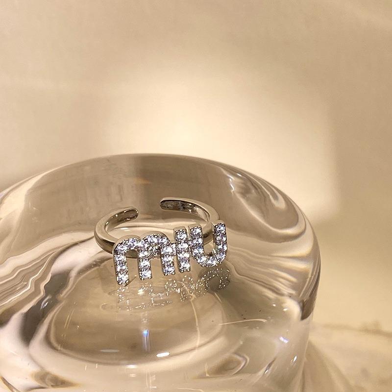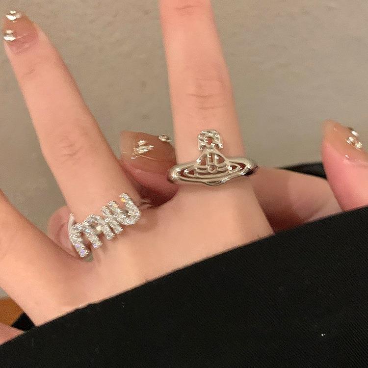 Niche Design Flash Diamond Letter Ring Women's Light Luxury Food Finger Ring ins Personalized Fashion Couple's Ring for Men