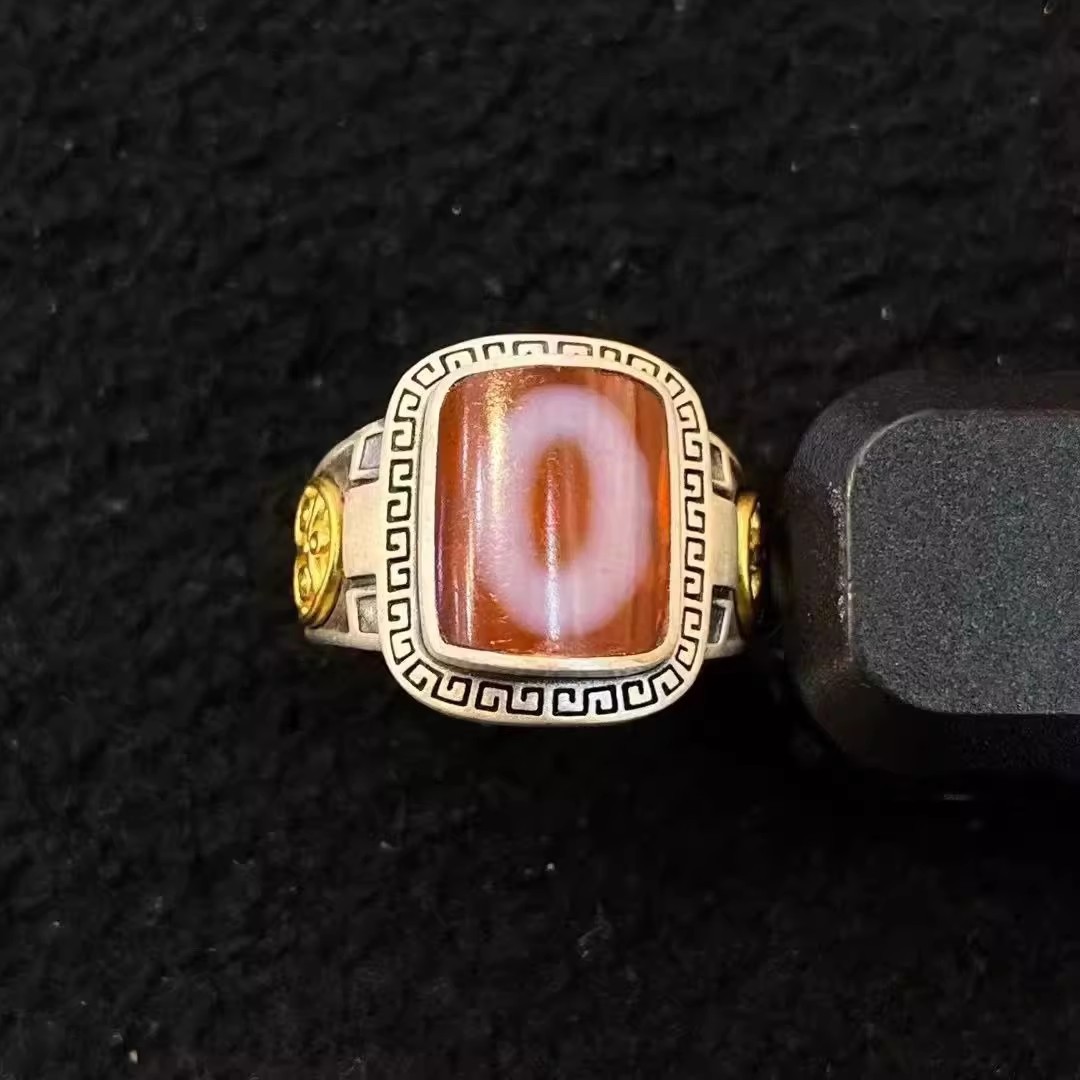 Xizang Tianzhu Ram Tianzhu Ring Seiko Inlaid Retro High-end Temperament All-match Index Finger Ring Jewelry
