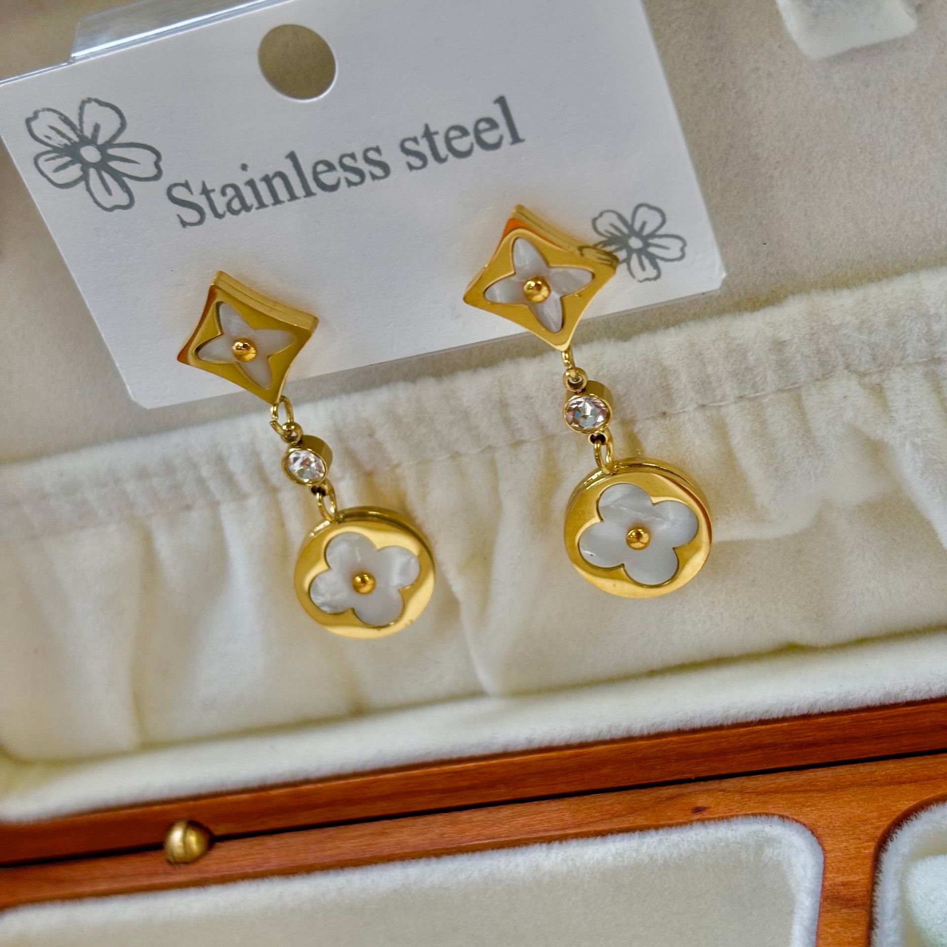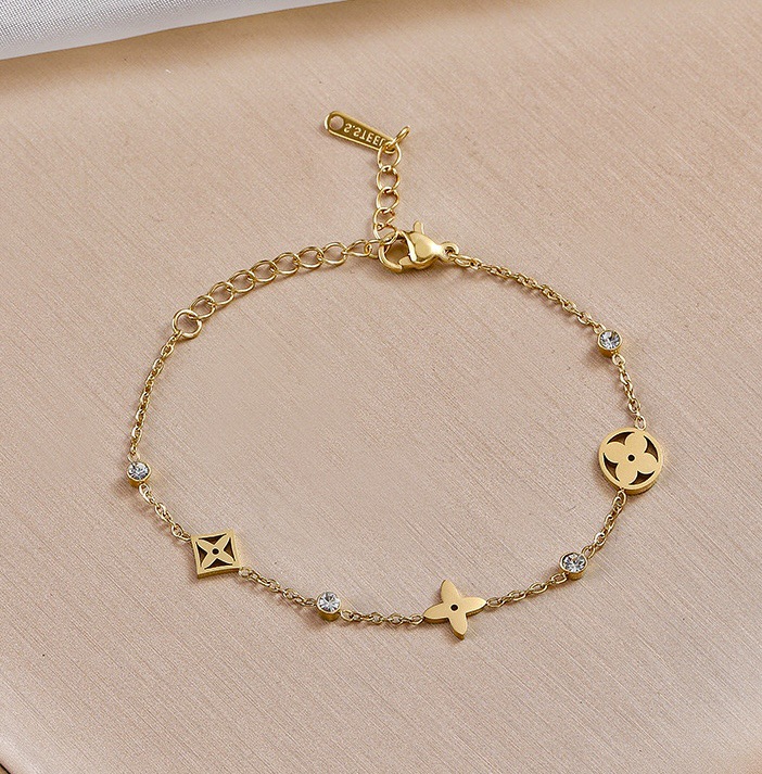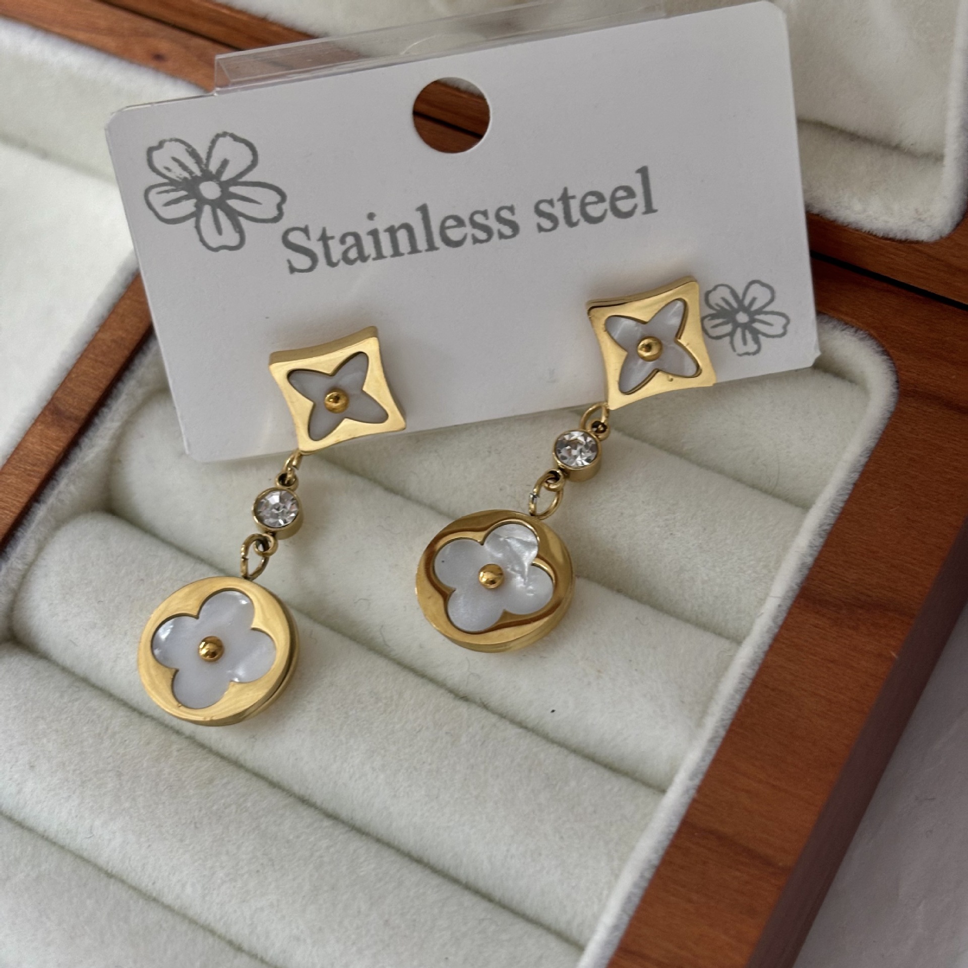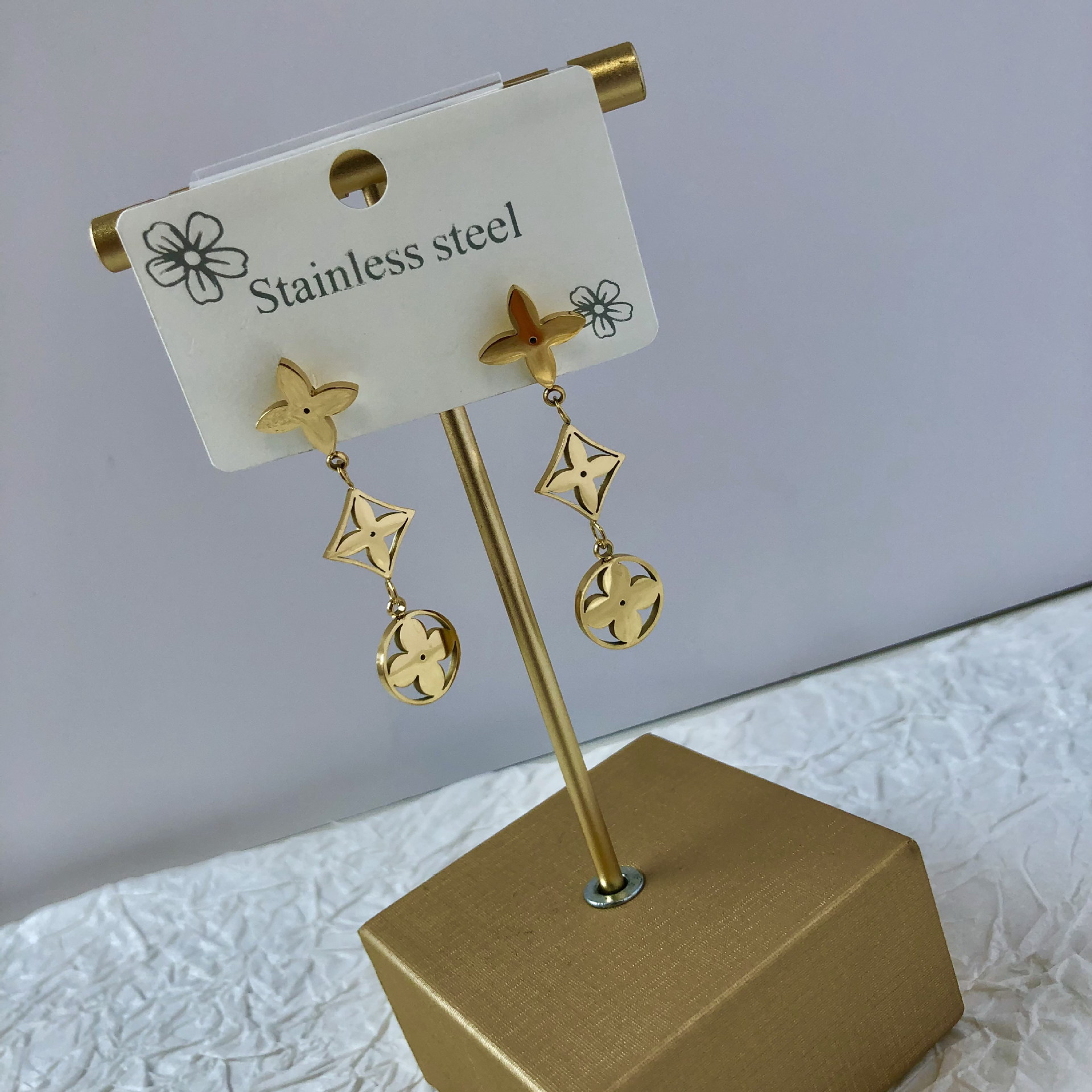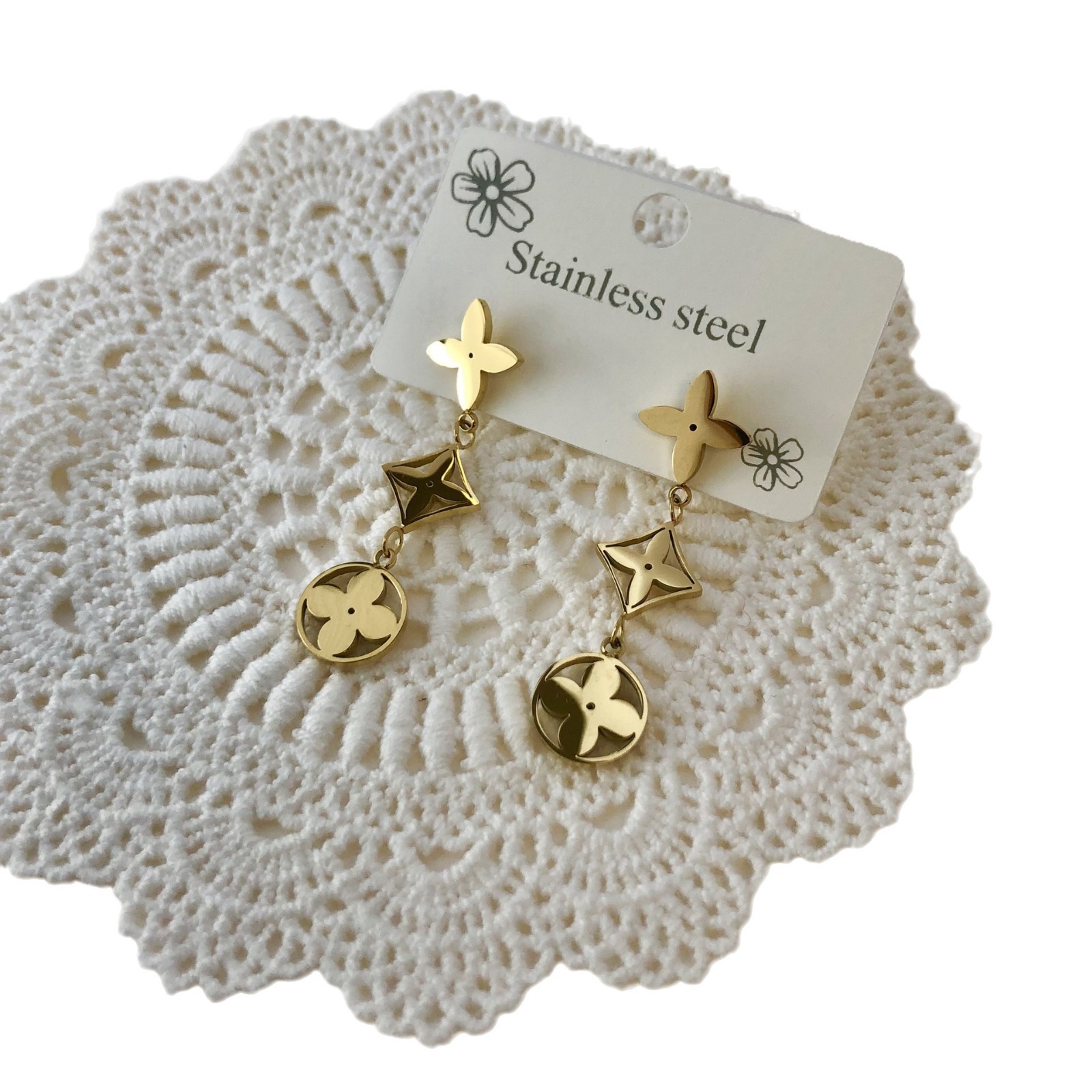 New Stainless Steel Big-Name Necklace and Earrings Set Donkey's Four-Leaf Clover Pattern Jewelry Set Gold Color Does Not Fade