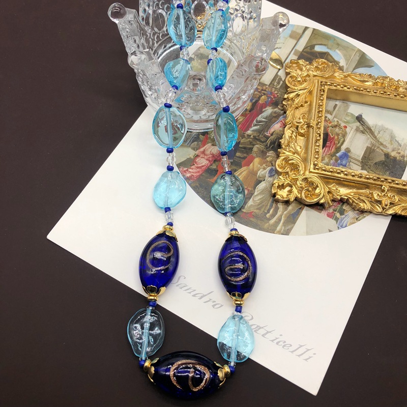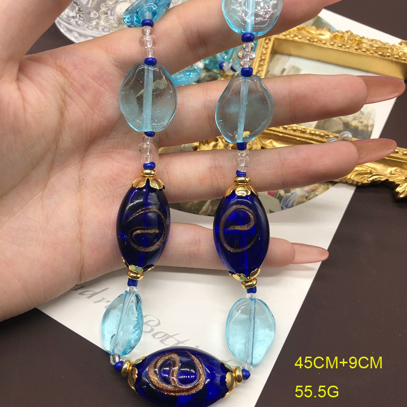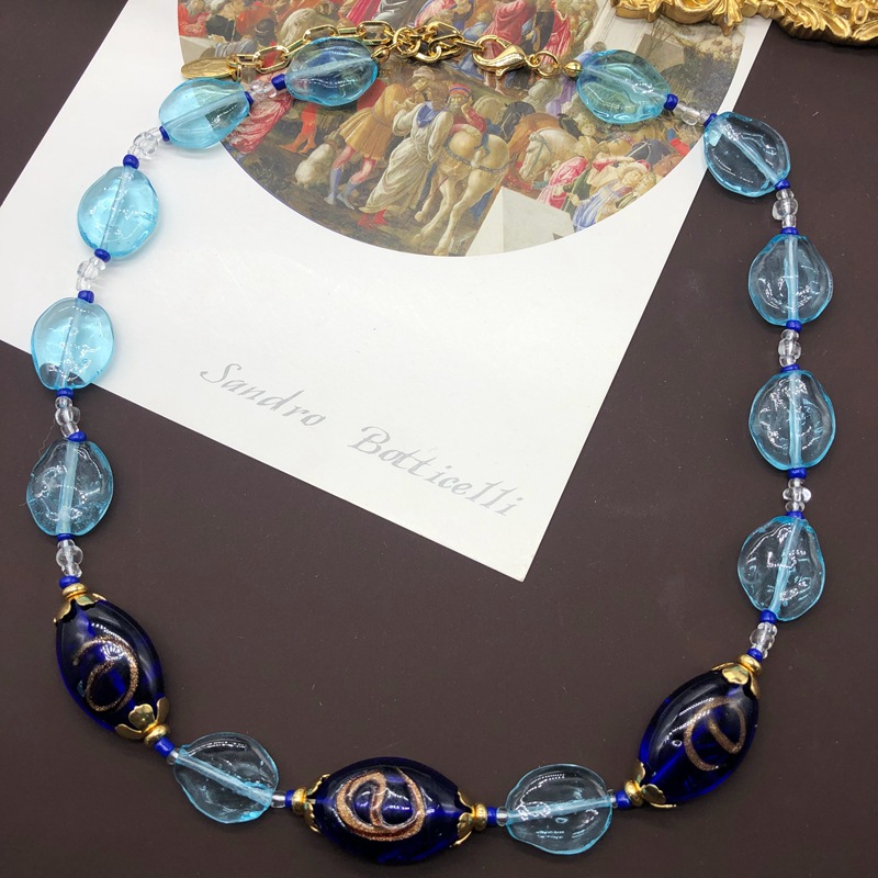 Hawaiian Style Ocean Series Necklace Earrings Vintage Fresh Ice Blue Glass Necklace Crystal Earrings Set