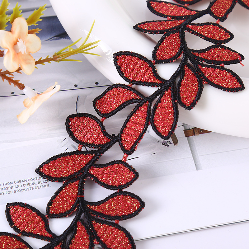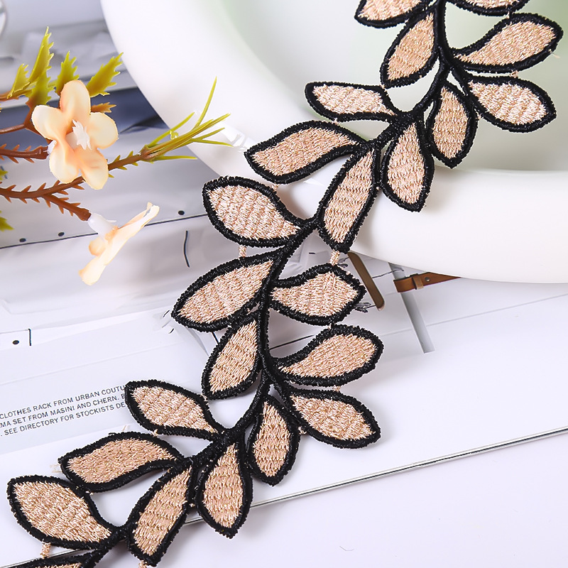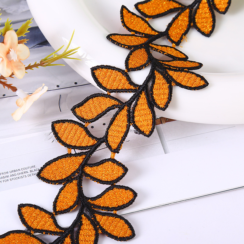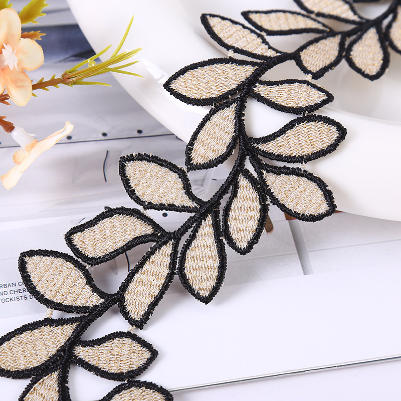 5.5cm gold thread embroidery lace leaves lace cross-border foreign trade clothing accessories home fabric hair accessories crafts