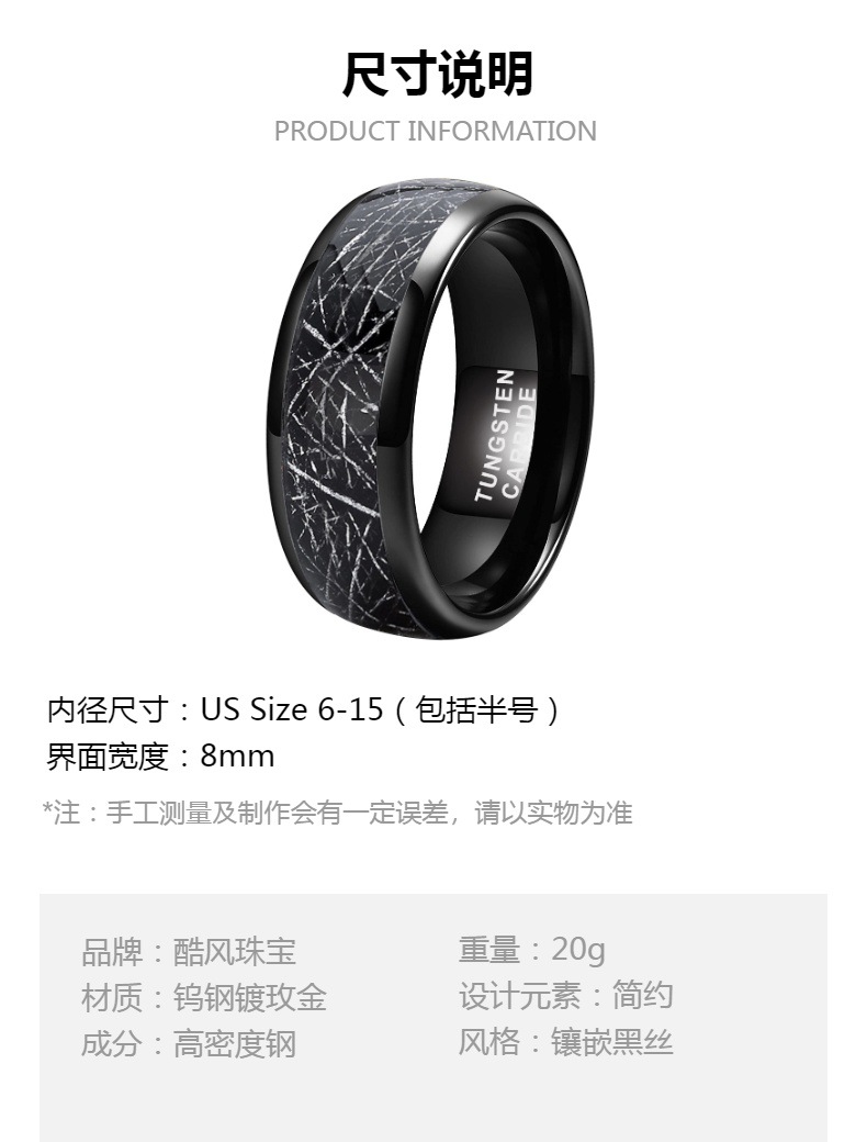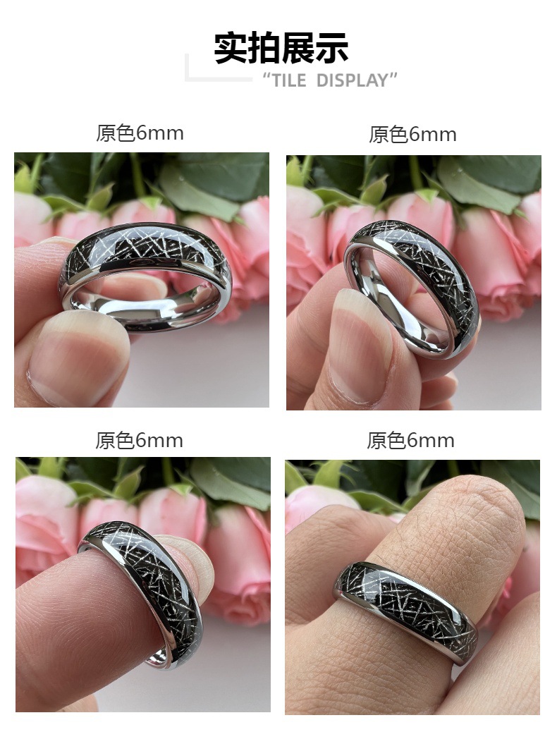Tungsten Steel Ring Curved Inlaid with Galaxy Blast Wormhole Black Silk Ins Style High Quality Export Source Factory Direct Sales Model