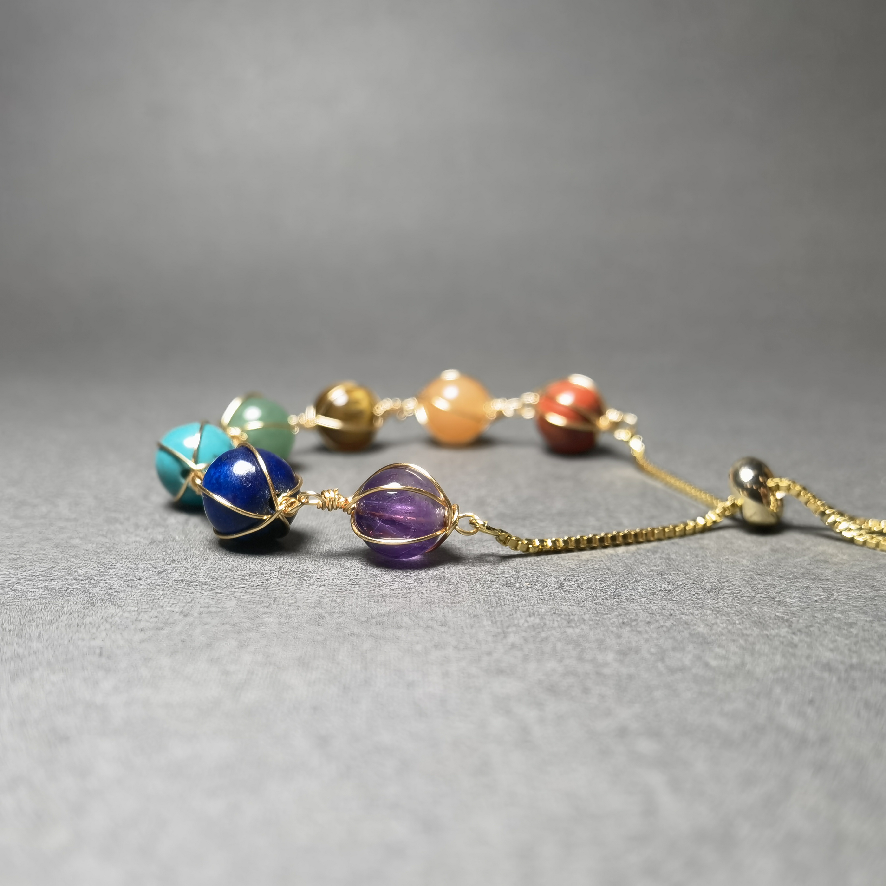 Seven-Color Crystal Bracelet Pulse Yoga Meditation Jewelry Ins Style European and American Cross-Border E-Commerce Popular Bracelet Wholesale Wheel
