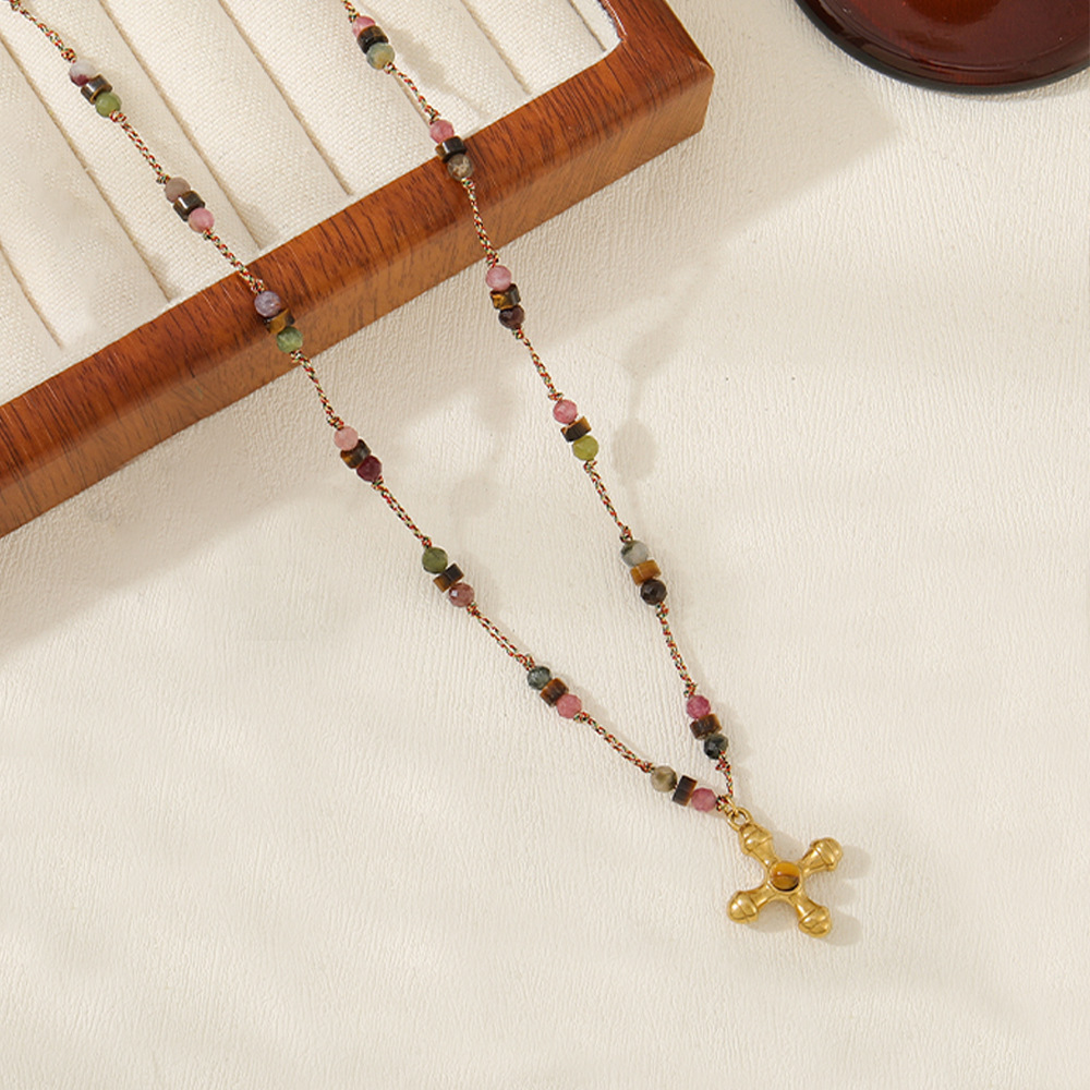 Color: 【xl-1152dy01】cross tourmaline necklace