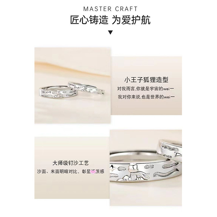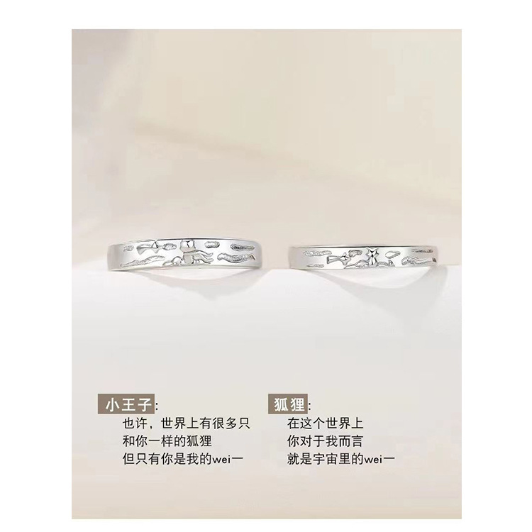 Little Prince and Fox Couple Ring for Men and Women Ins Niche Design Simple BFF Ring Valentine's Day Gift