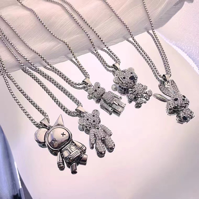 Color: Teddy Bear-Titanium Steel Chain 70cm