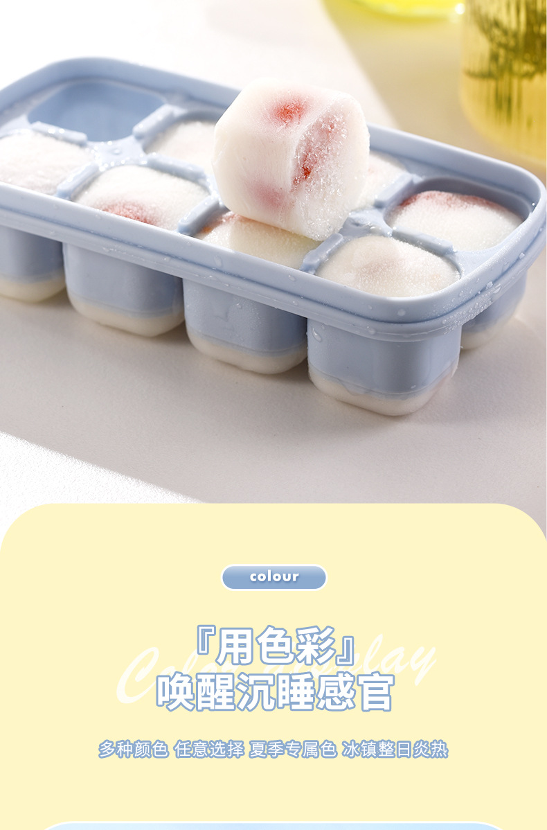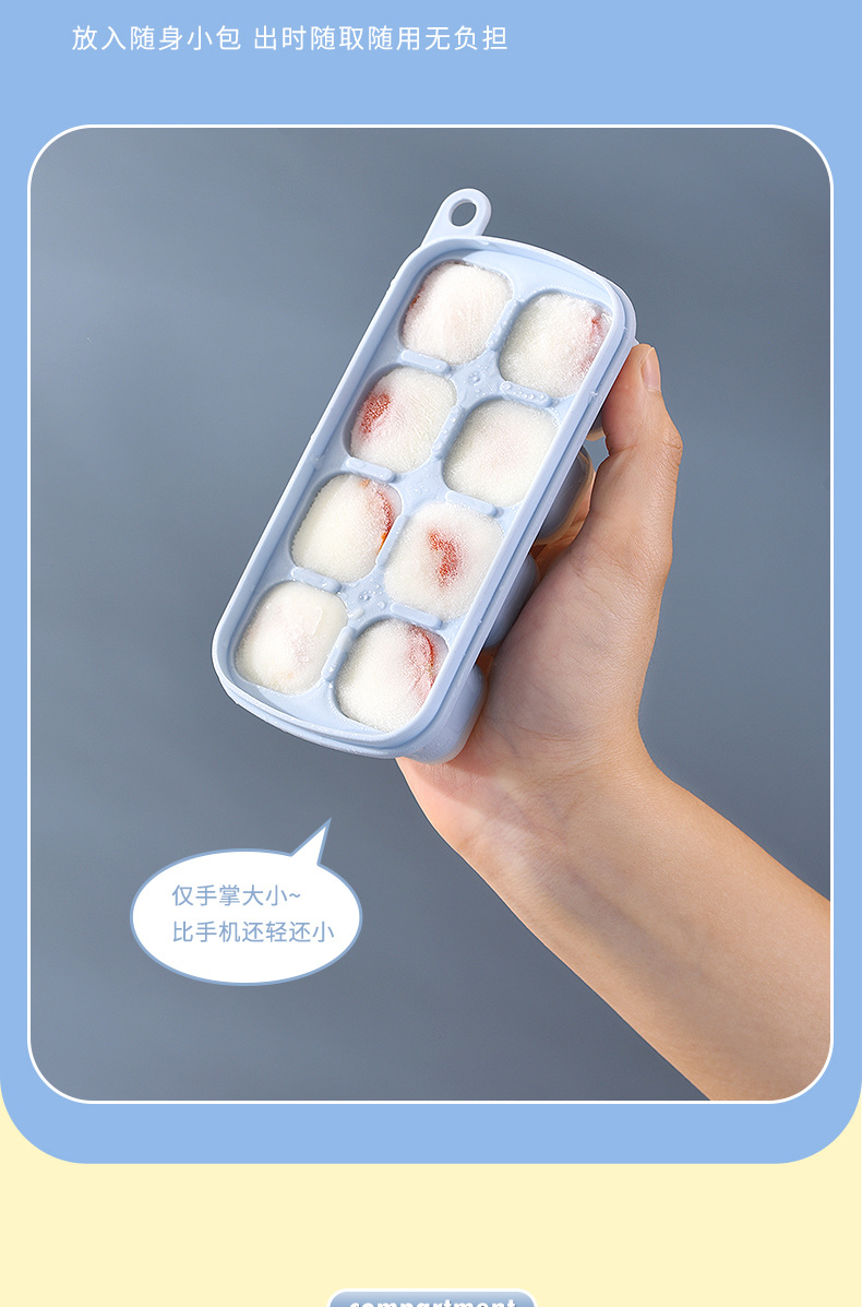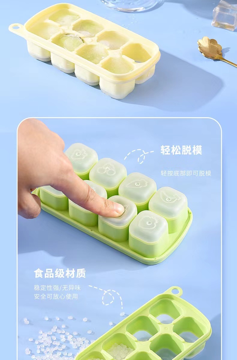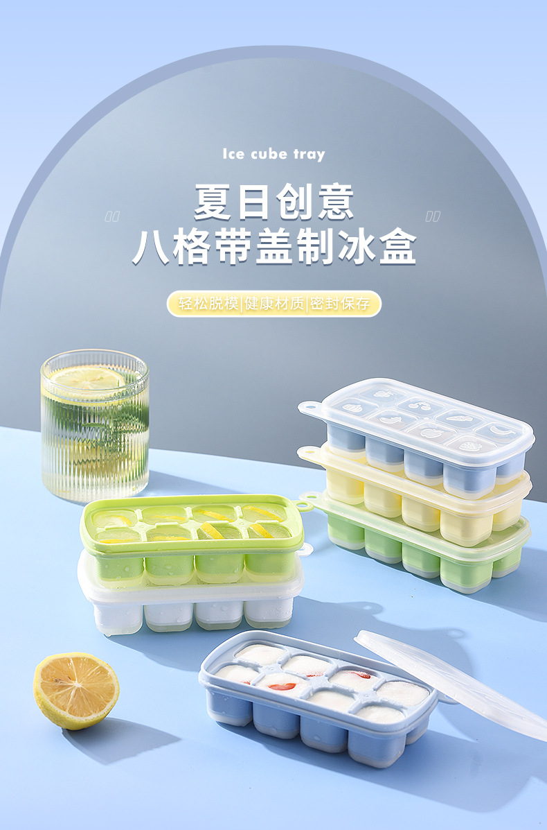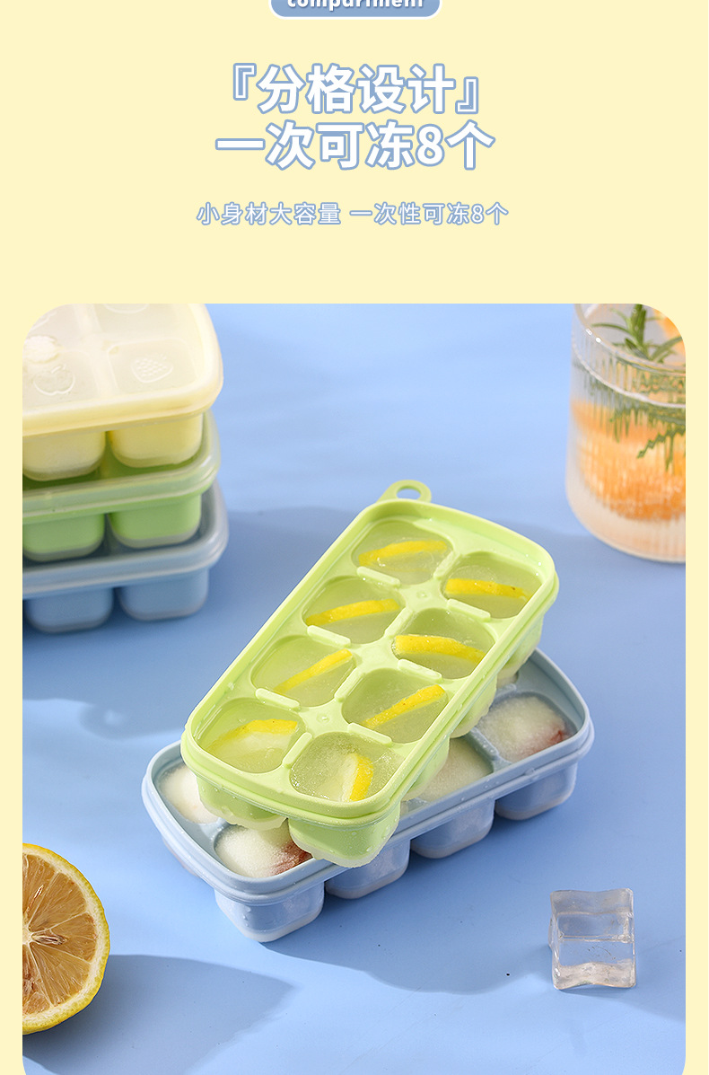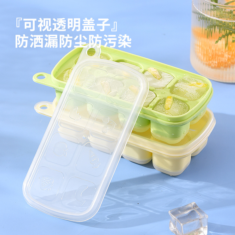 8-Compartment Ice Box with Lid, Household Homemade Small Ice Tray, Sealed Baby Food Ice Cream, Refrigerator, Frozen Ice Cubes