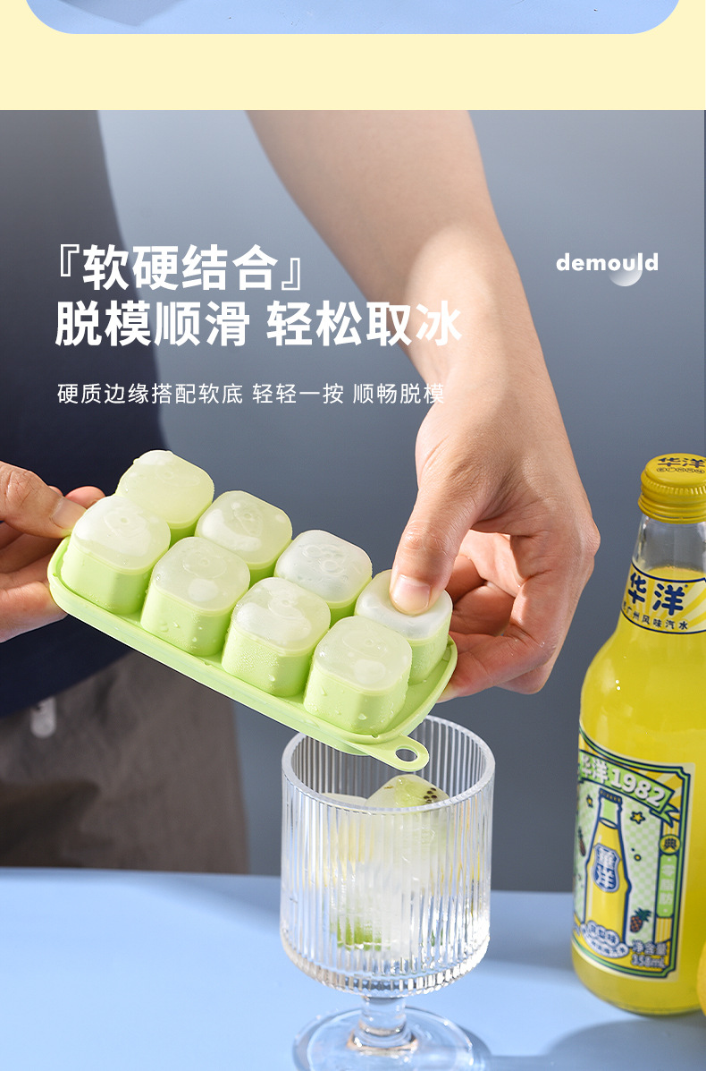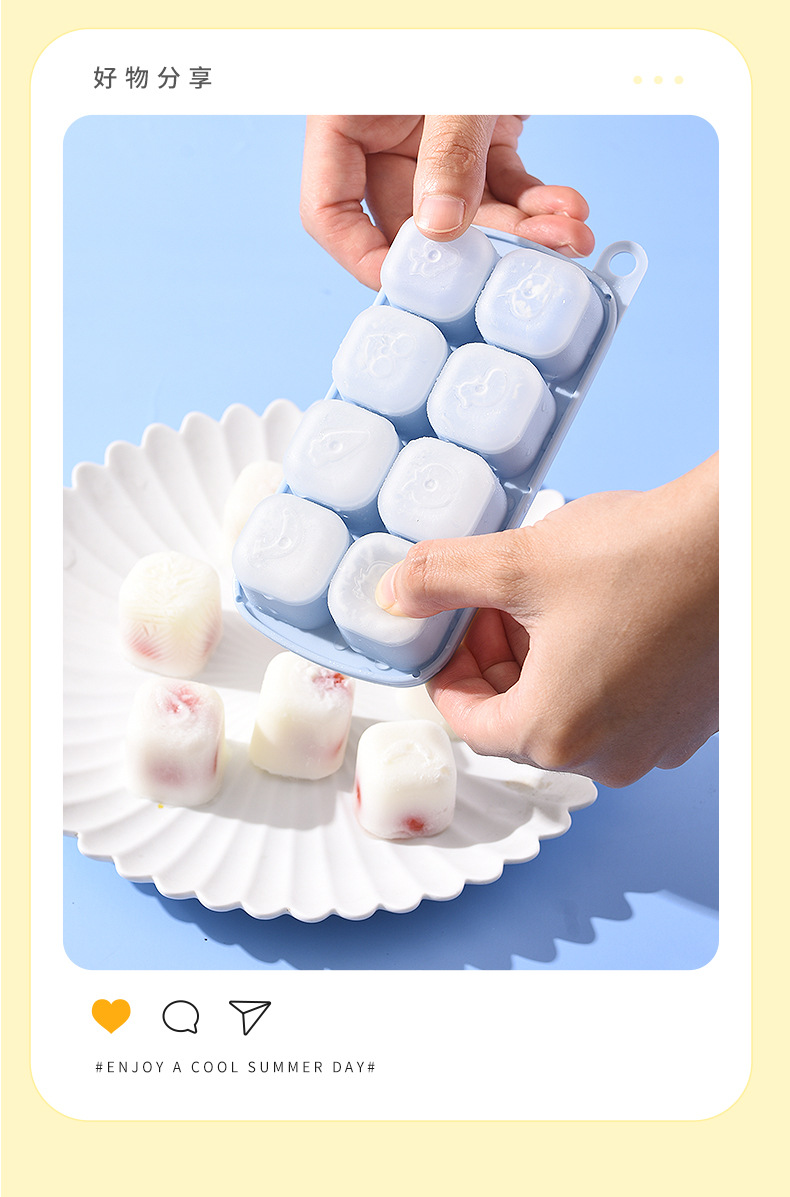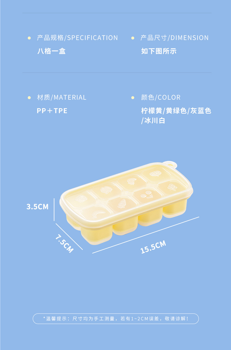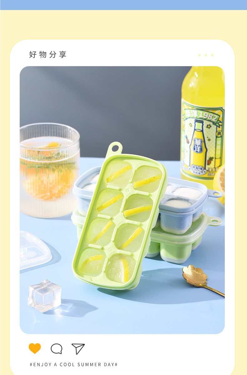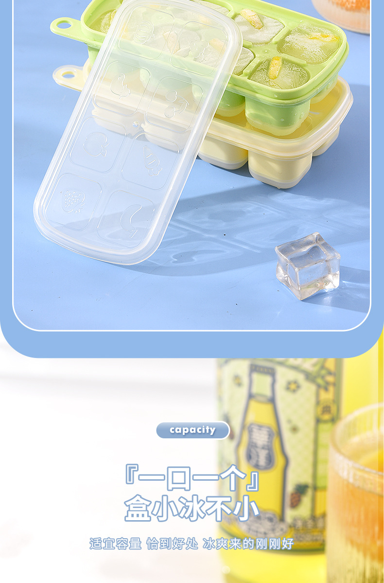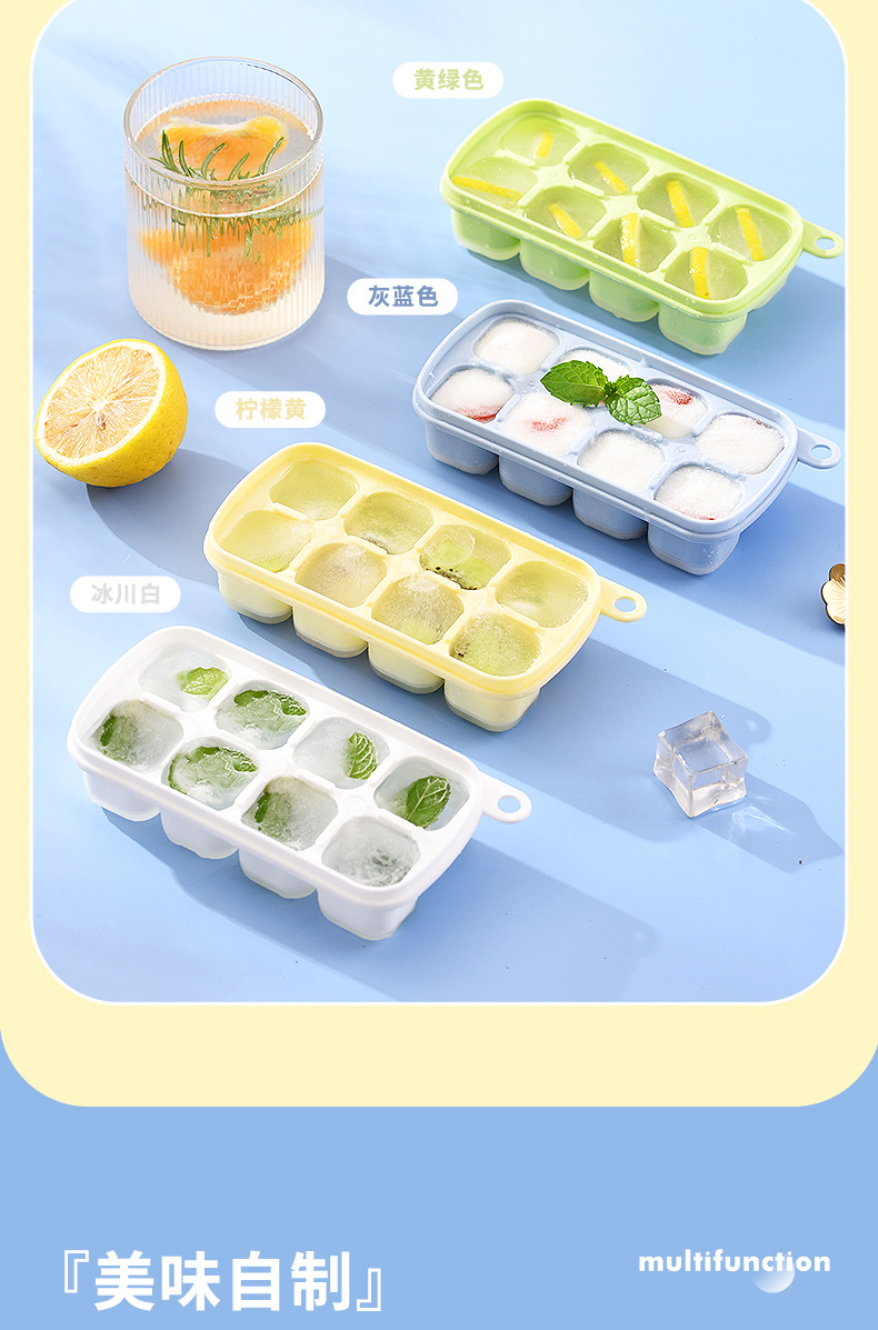 8-Compartment Ice Box with Lid, Household Homemade Small Ice Tray, Sealed Baby Food Ice Cream, Refrigerator, Frozen Ice Cubes