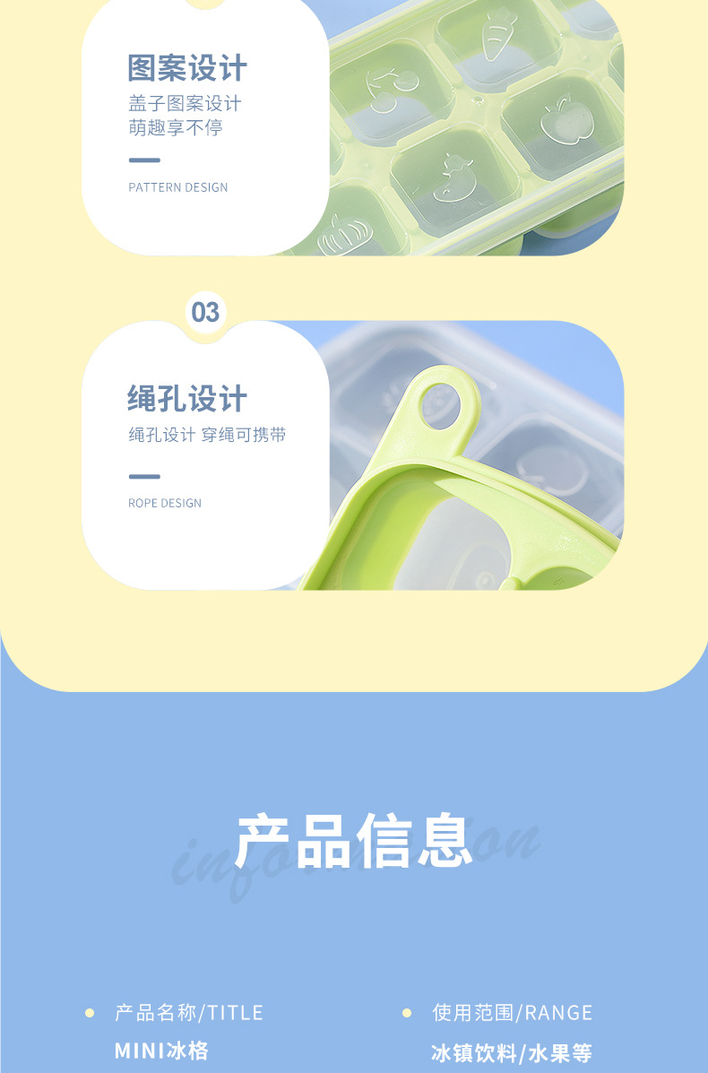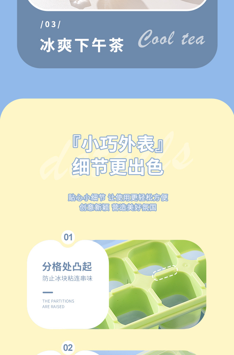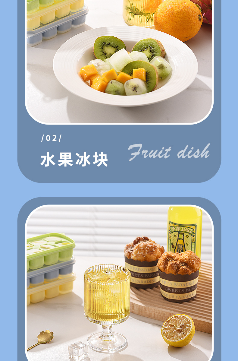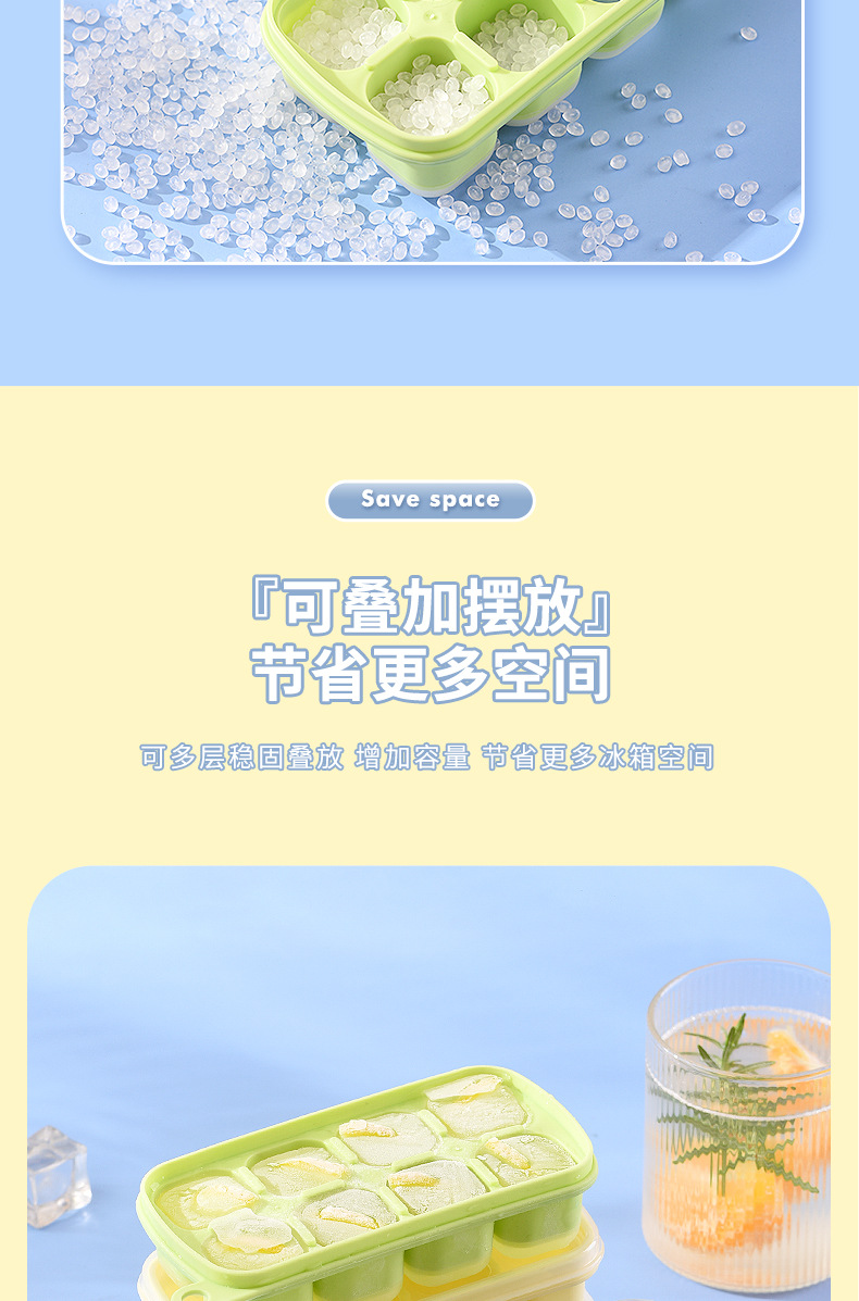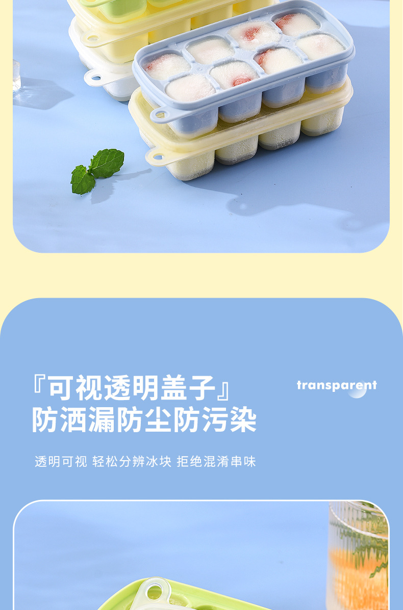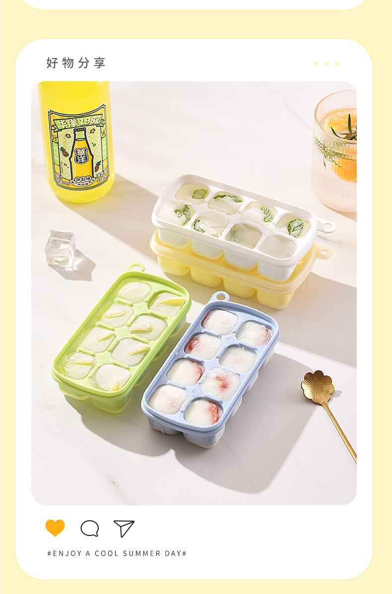 8-Compartment Ice Box with Lid, Household Homemade Small Ice Tray, Sealed Baby Food Ice Cream, Refrigerator, Frozen Ice Cubes