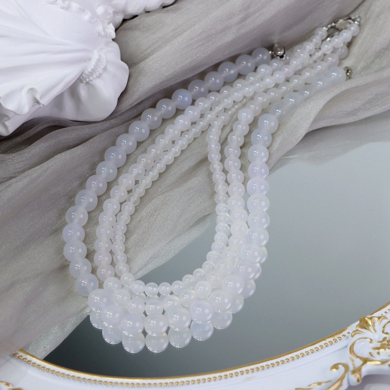 Natural white agate 925 silver ingot buckle version--6mm--43cm
