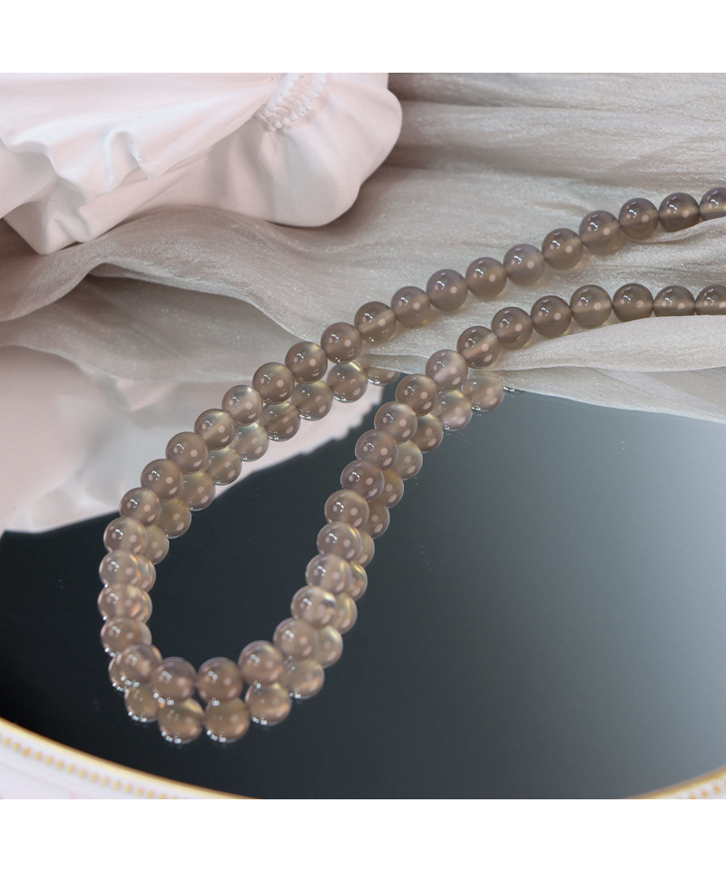 Natural gray agate 925 silver ingot buckle version--8mm--43cm