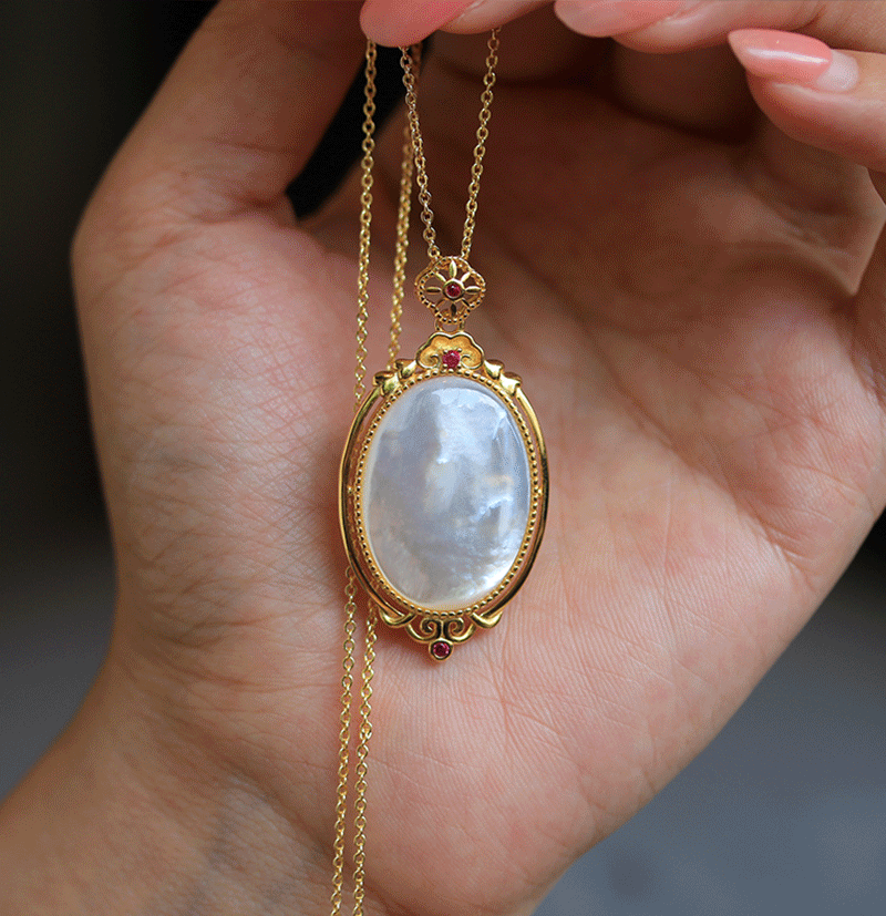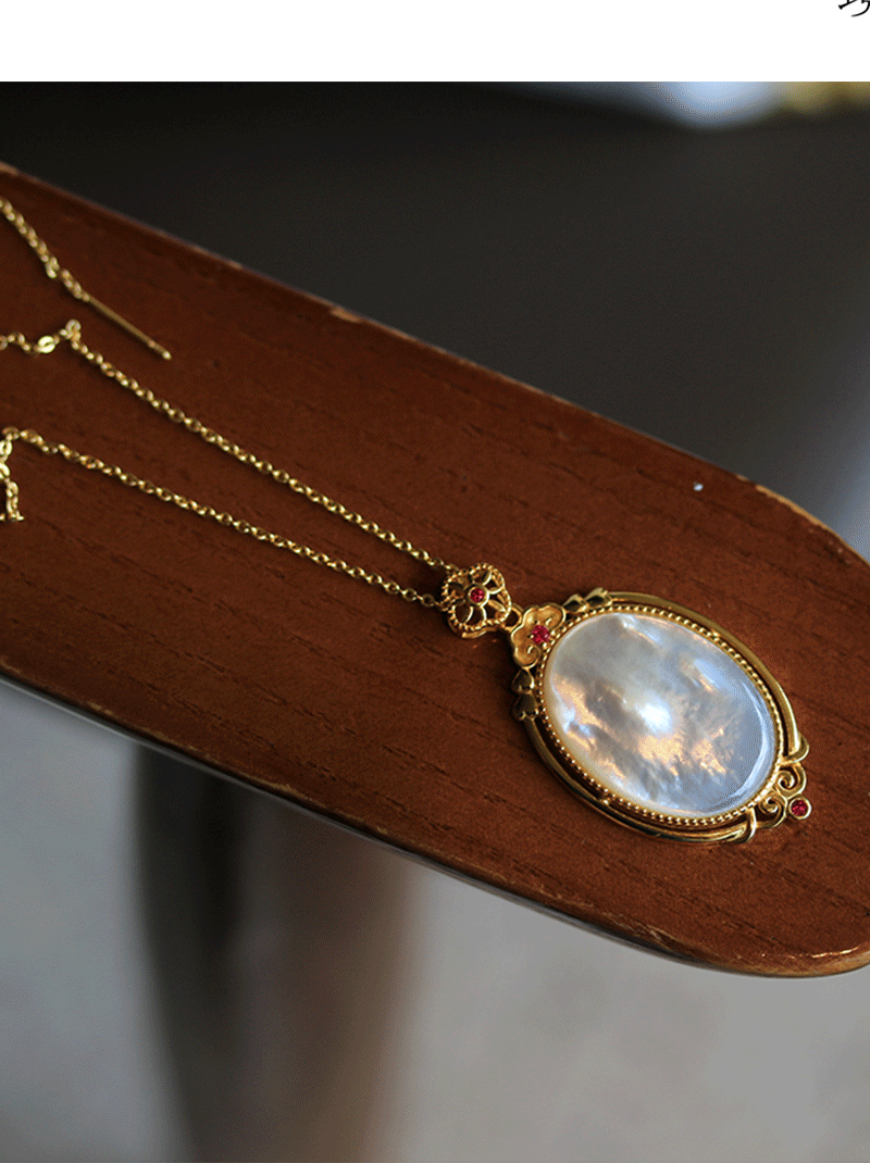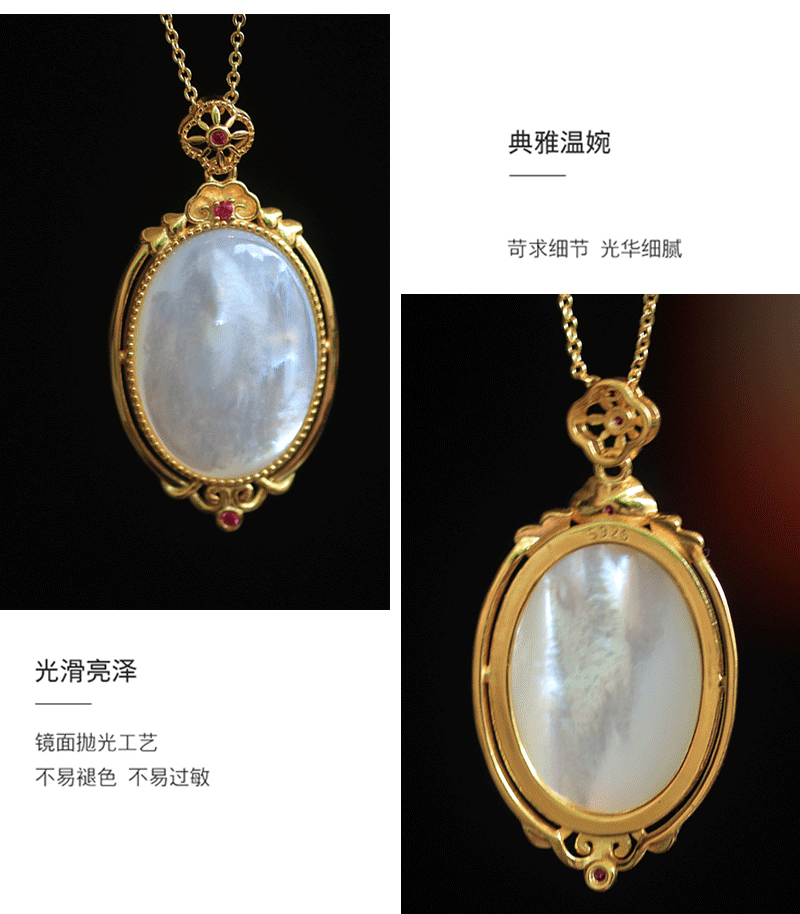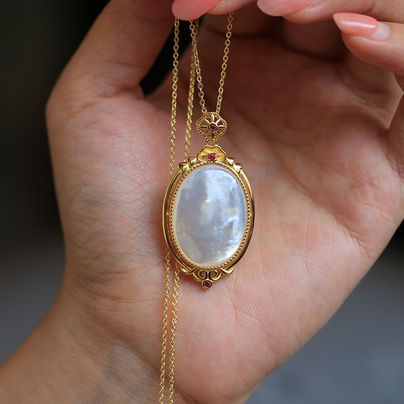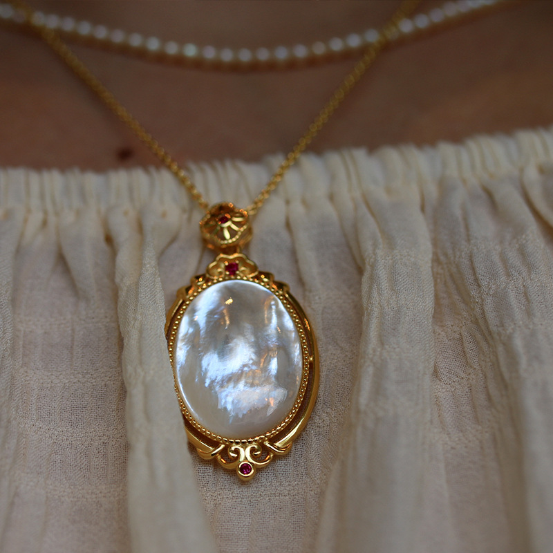 s925 All-Body Sterling Silver Gold-Plated Natural White Fritillaria Egg-Shaped Pendant Exquisite High-Class Women's Necklace