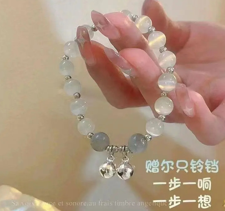 Bell Bracelet Female Student Bracelet Grey Moonlight ins Style Niche Design Girlfriend Same Style Beaded Girls' Bracelet
