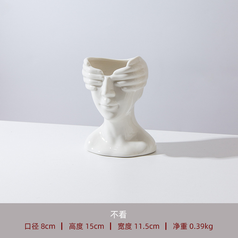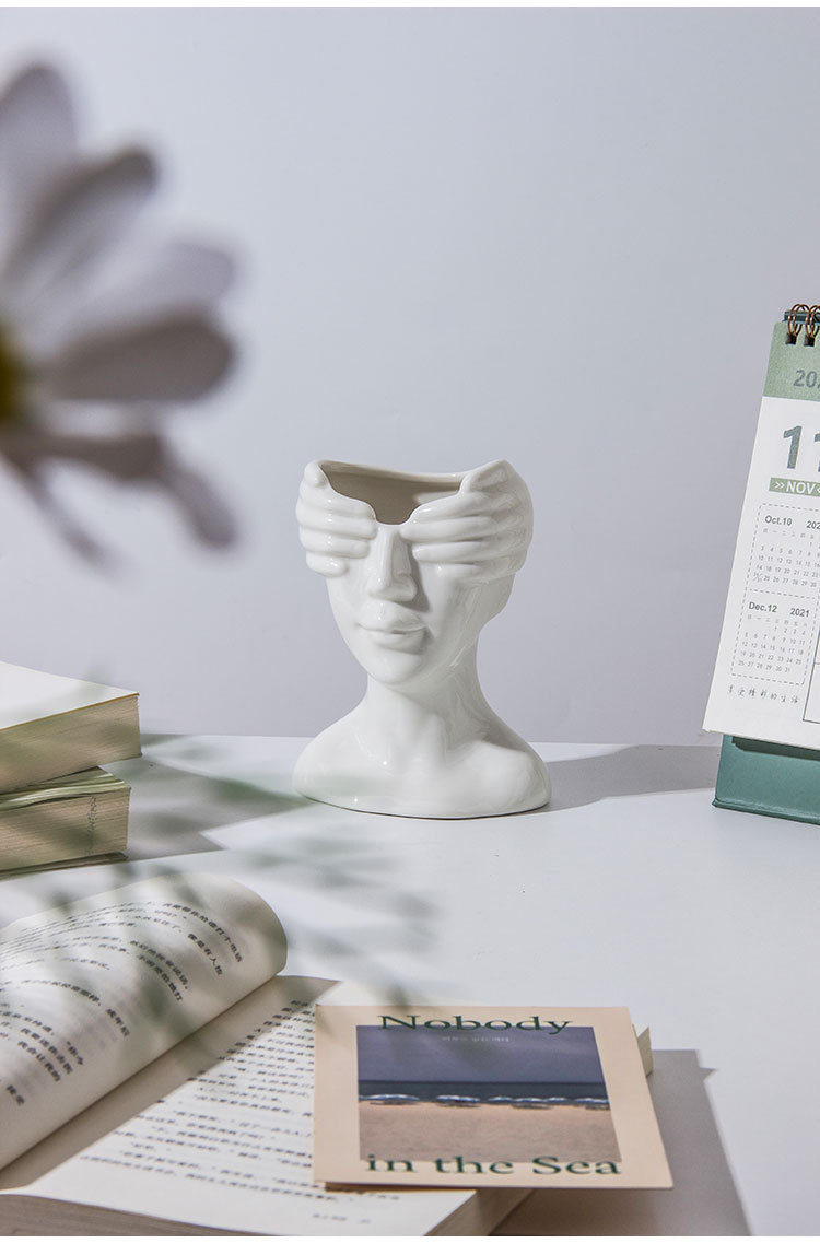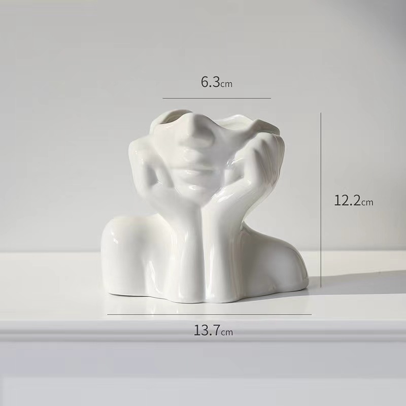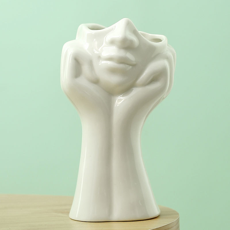 Wholesale ins style niche ceramic face vase ornaments Nordic creative home crafts high sense flower insert