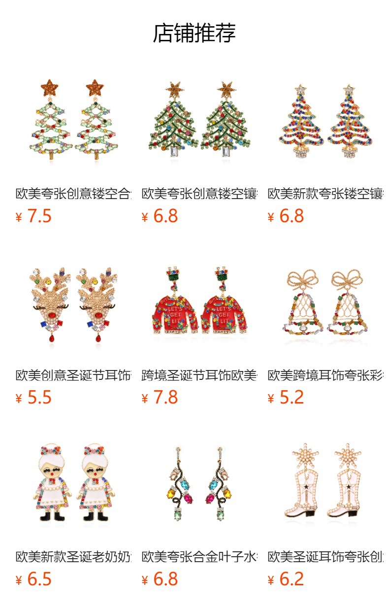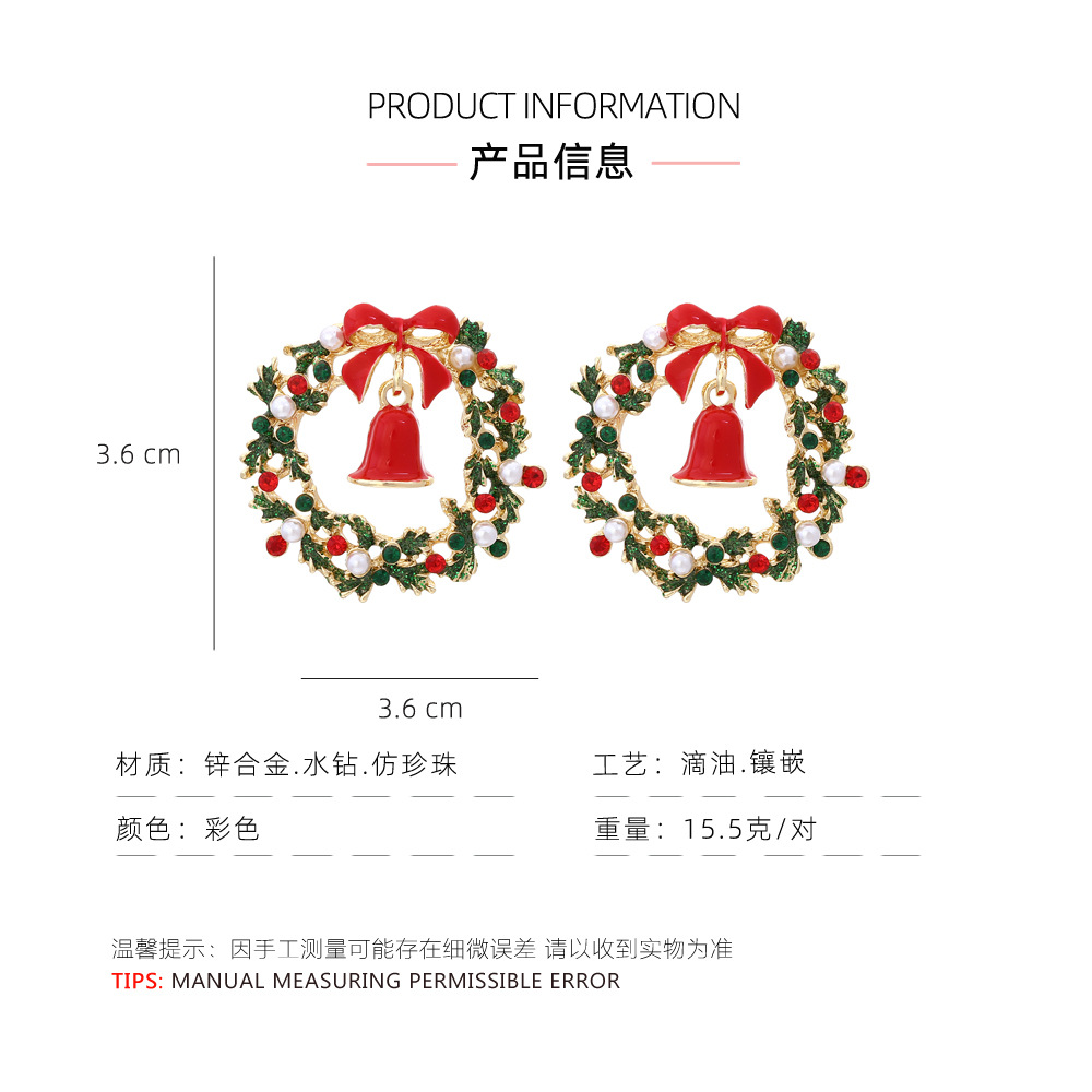European and American alloy oil drop diamond Christmas leaf wreath earrings bow bell earrings cross-border earrings for women