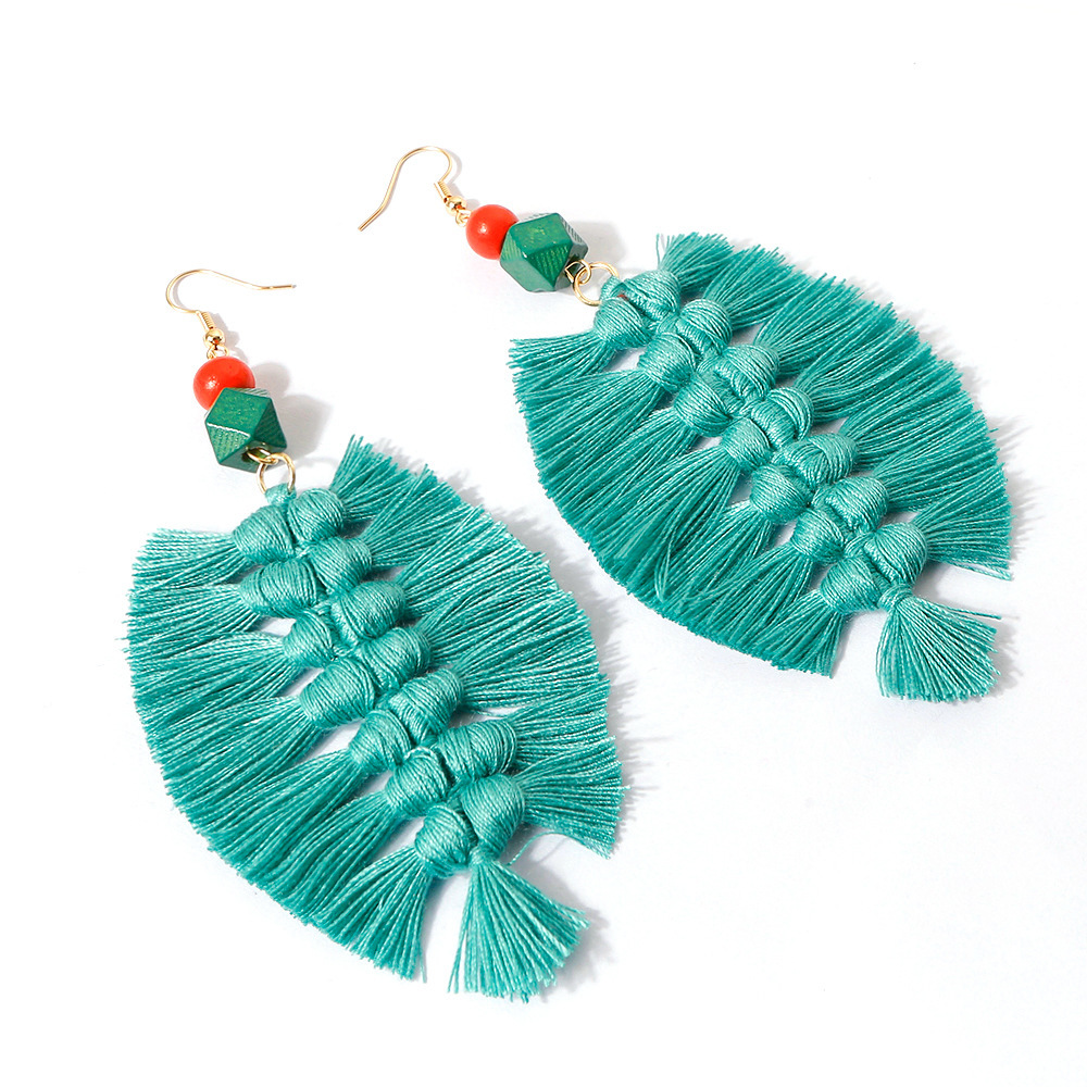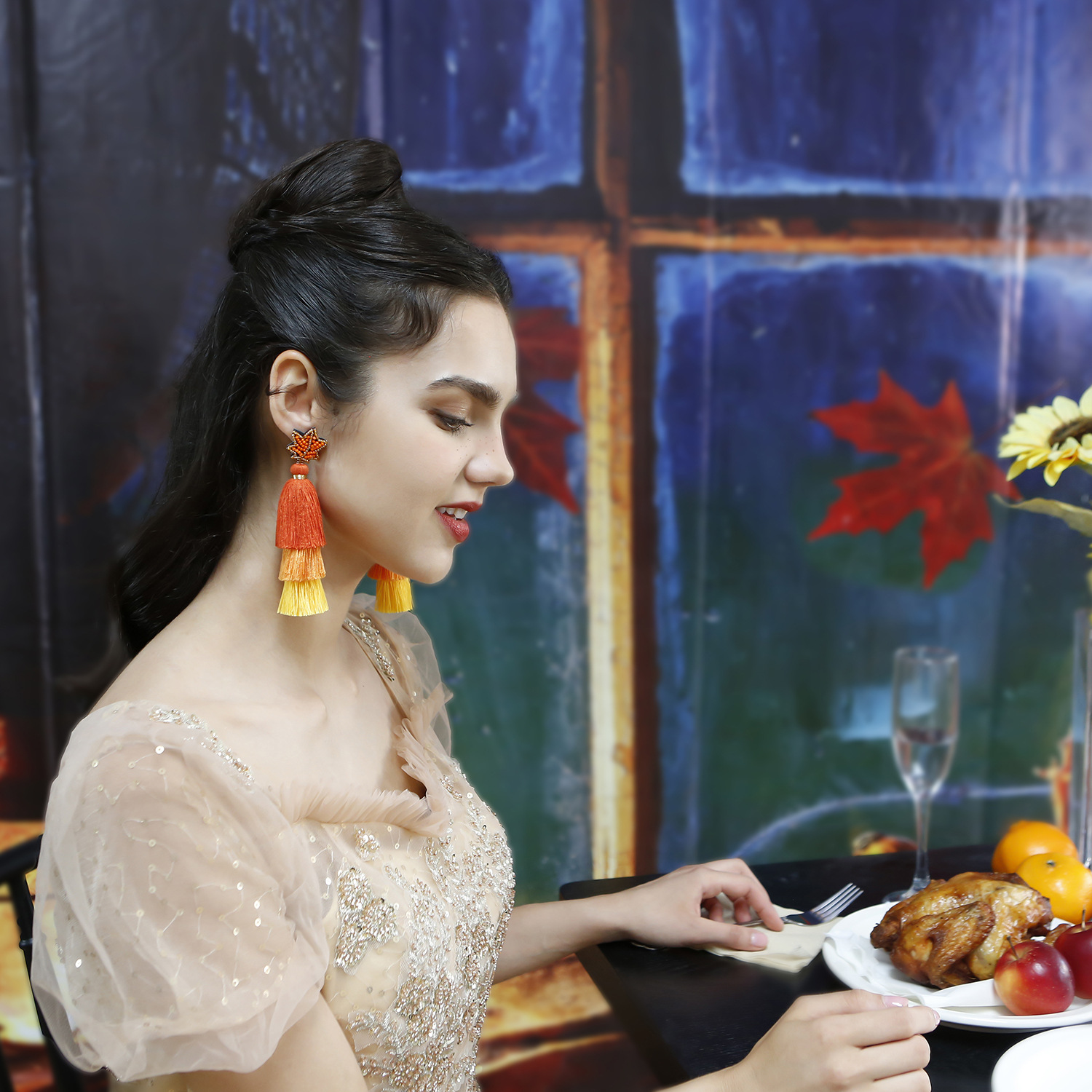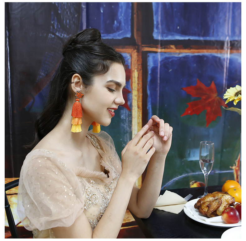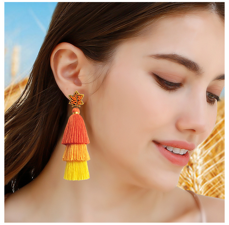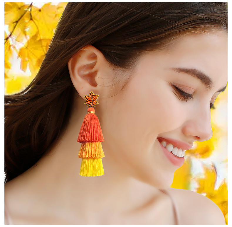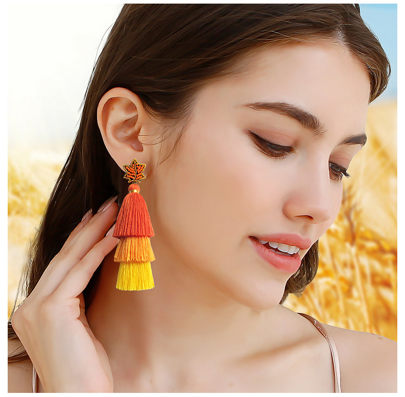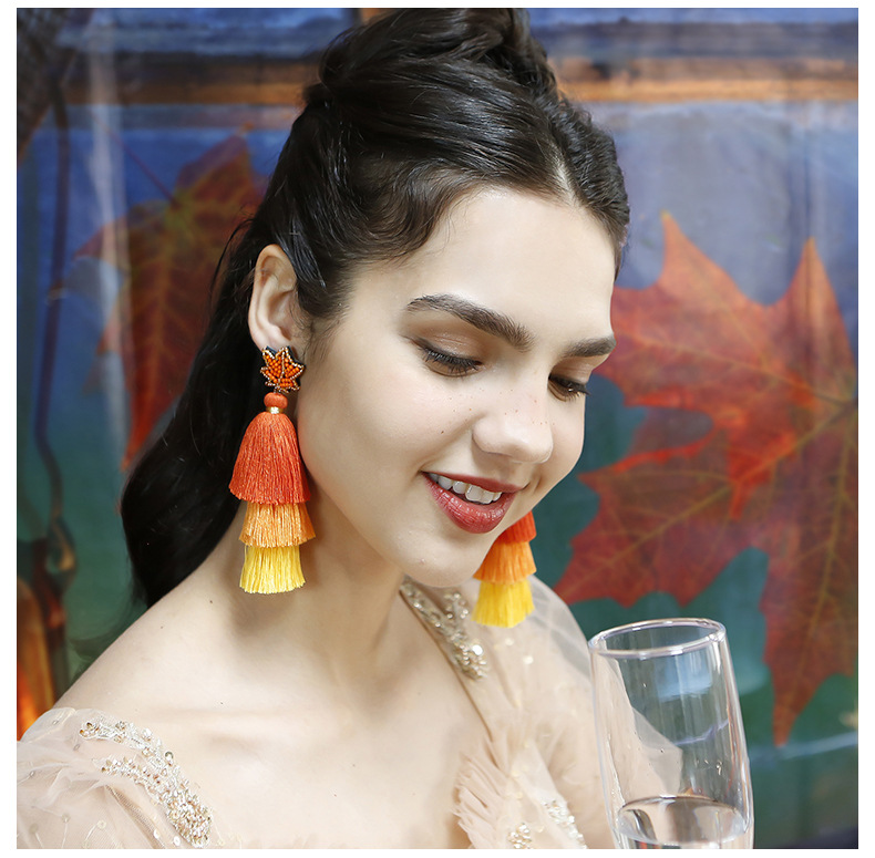 Intangible Cultural Heritage Crafts Woven Tassel Earrings Vintage Ethnic Style Autumn and Winter Explosions Rice Beads Maple Leaf Thanksgiving Earrings for Women