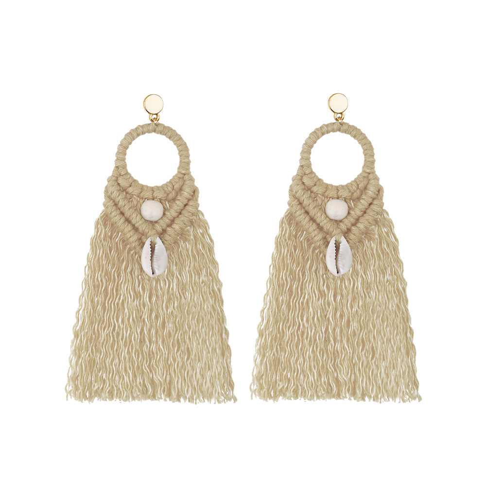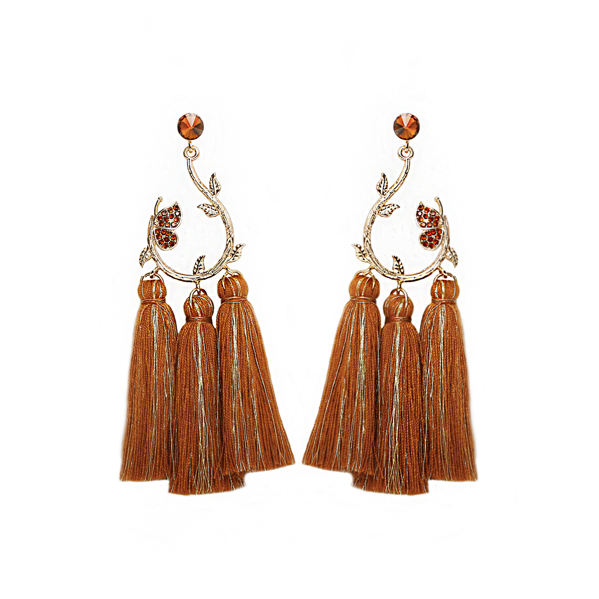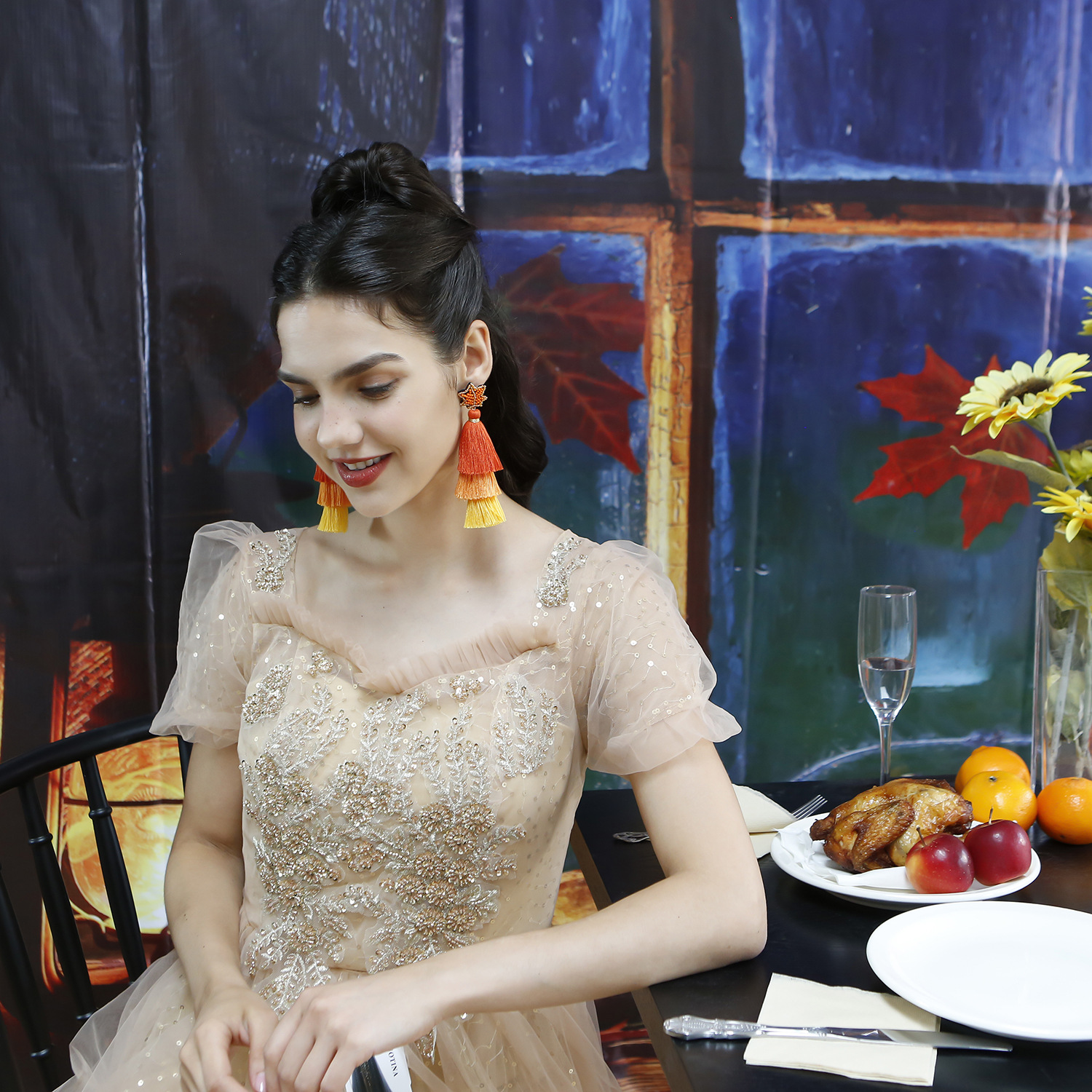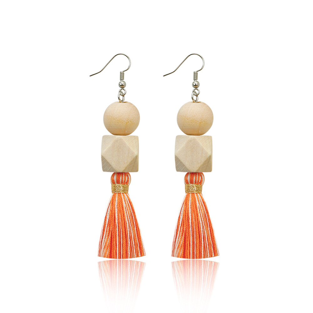 Intangible Cultural Heritage Crafts Woven Tassel Earrings Vintage Ethnic Style Autumn and Winter Explosions Rice Beads Maple Leaf Thanksgiving Earrings for Women