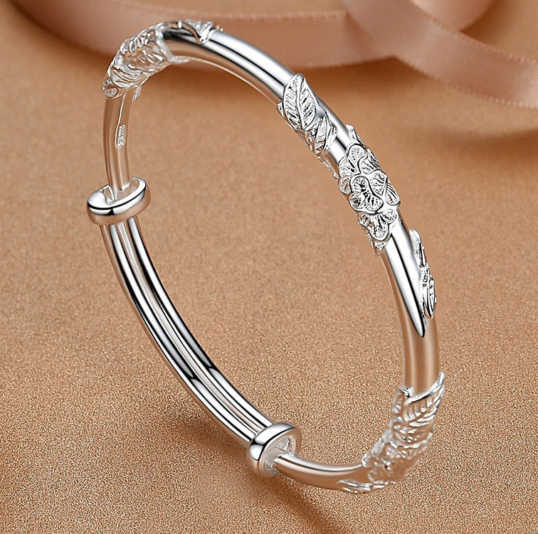 Brocade bracelet solid filament Finch feather texture light luxury push bracelet bracelet simple silver design sense