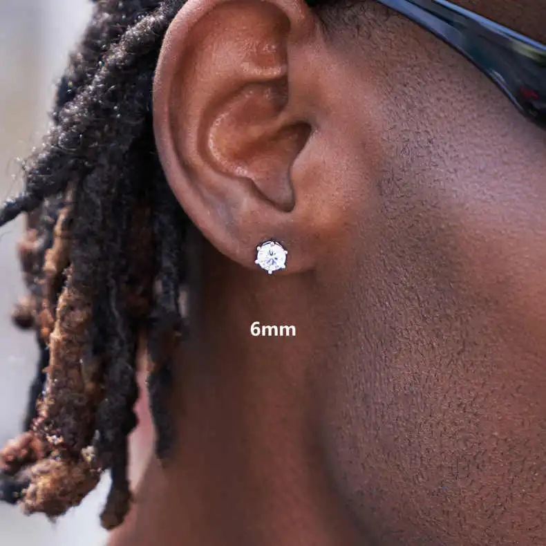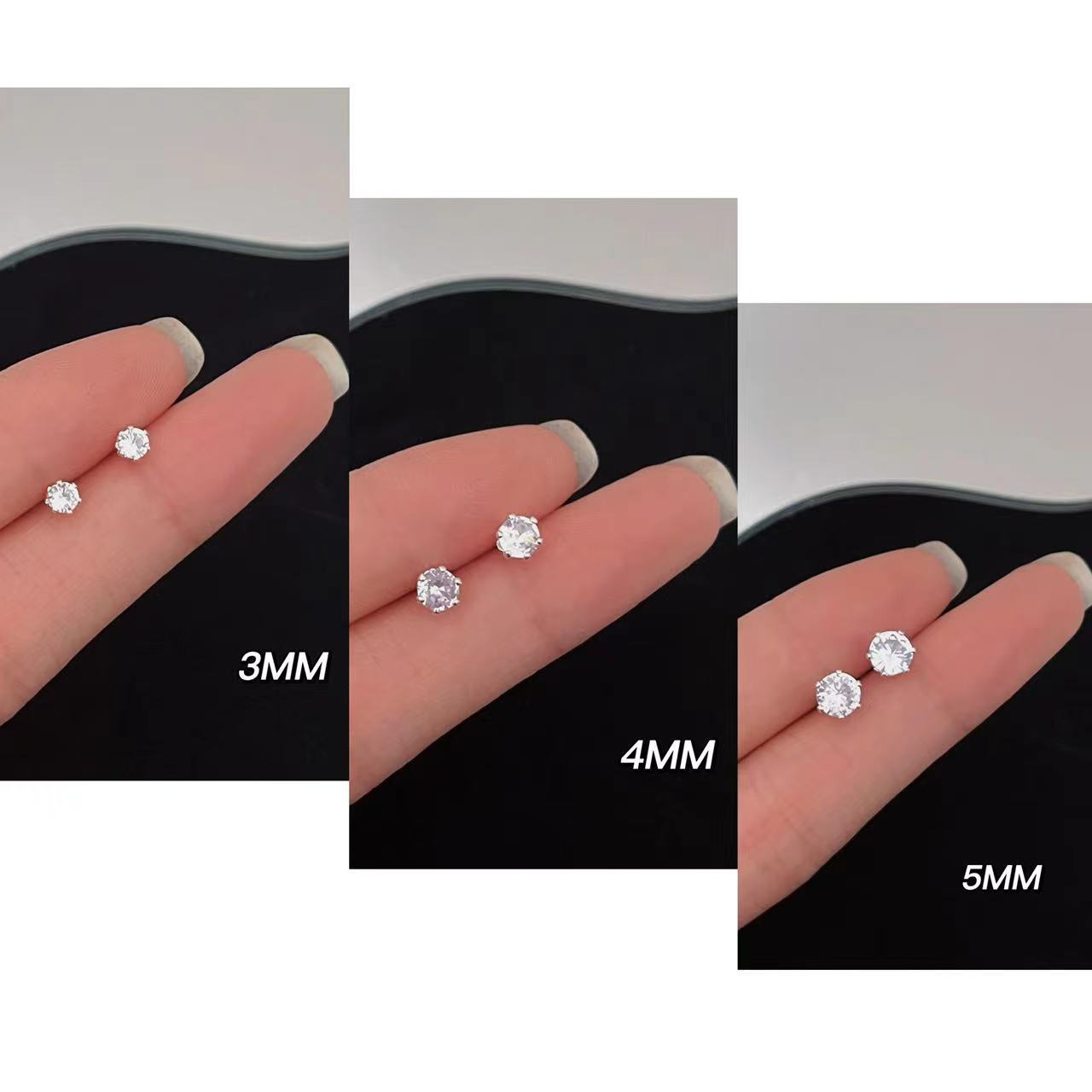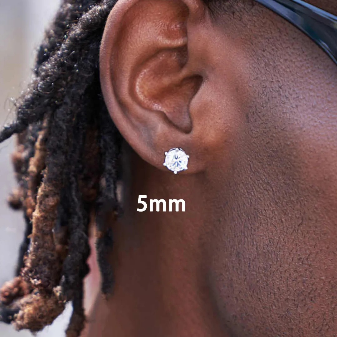 S925 silver diamond stud earrings men's trendy Super Flash hip hop simple niche high-grade sterling silver needle female zircon earrings