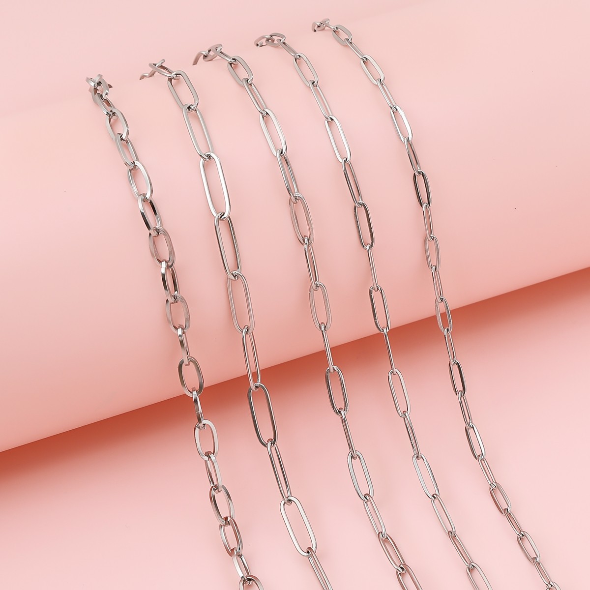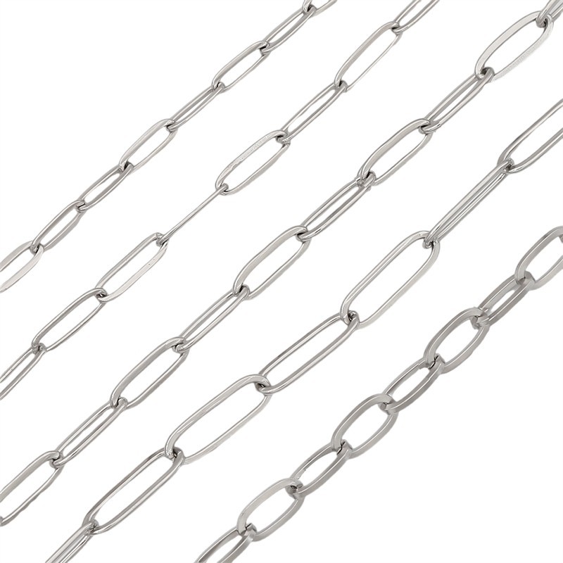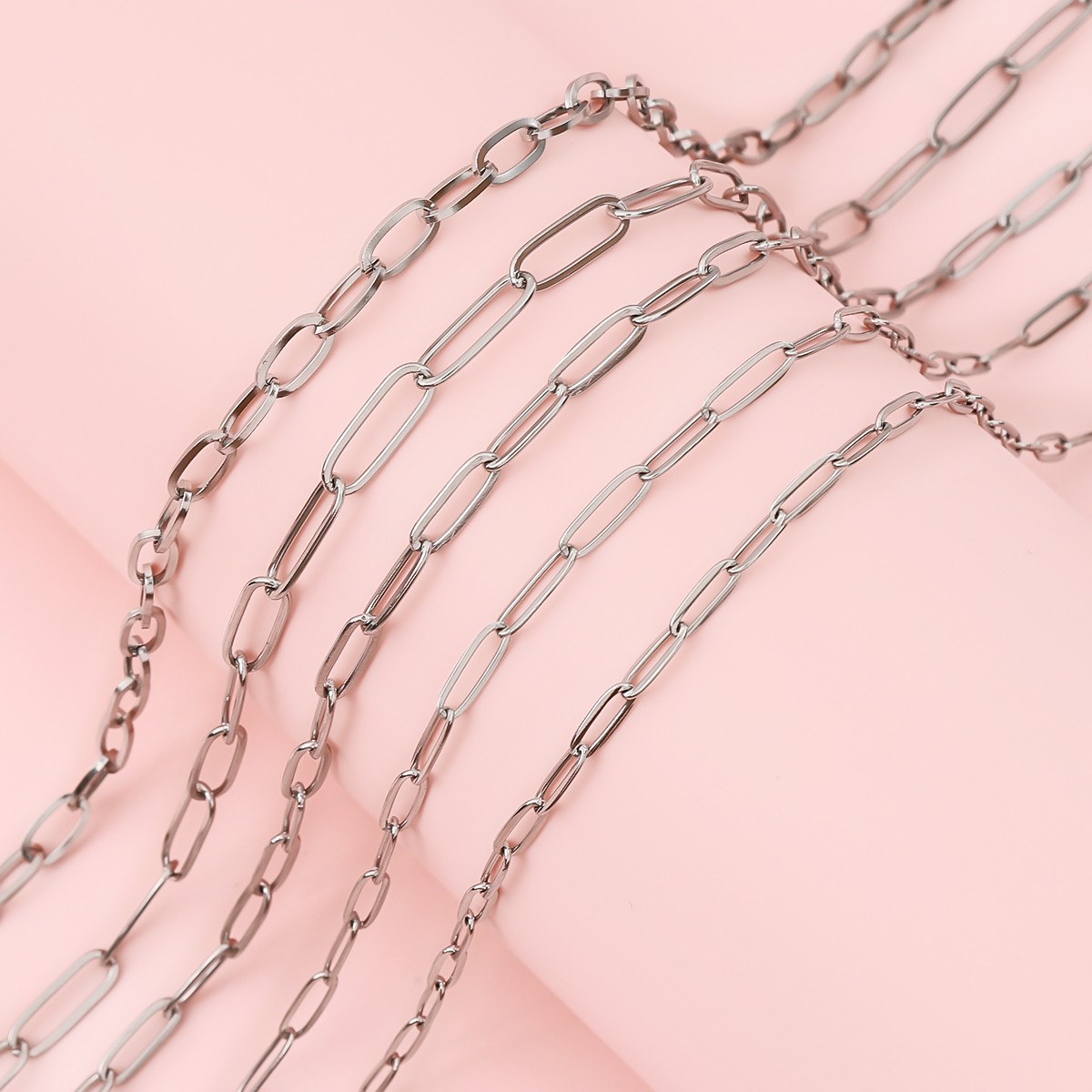 Stainless Steel Chain Squashed Long Square O-Chain Extended Chain DIY Handmade Bracelet Necklace Beaded Material Jewelry Accessories