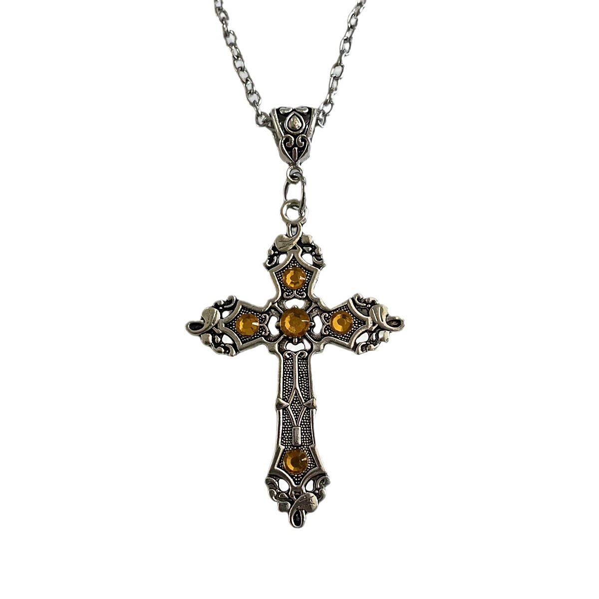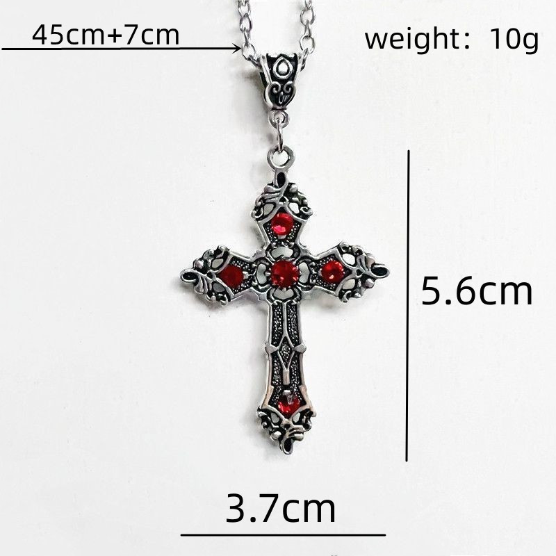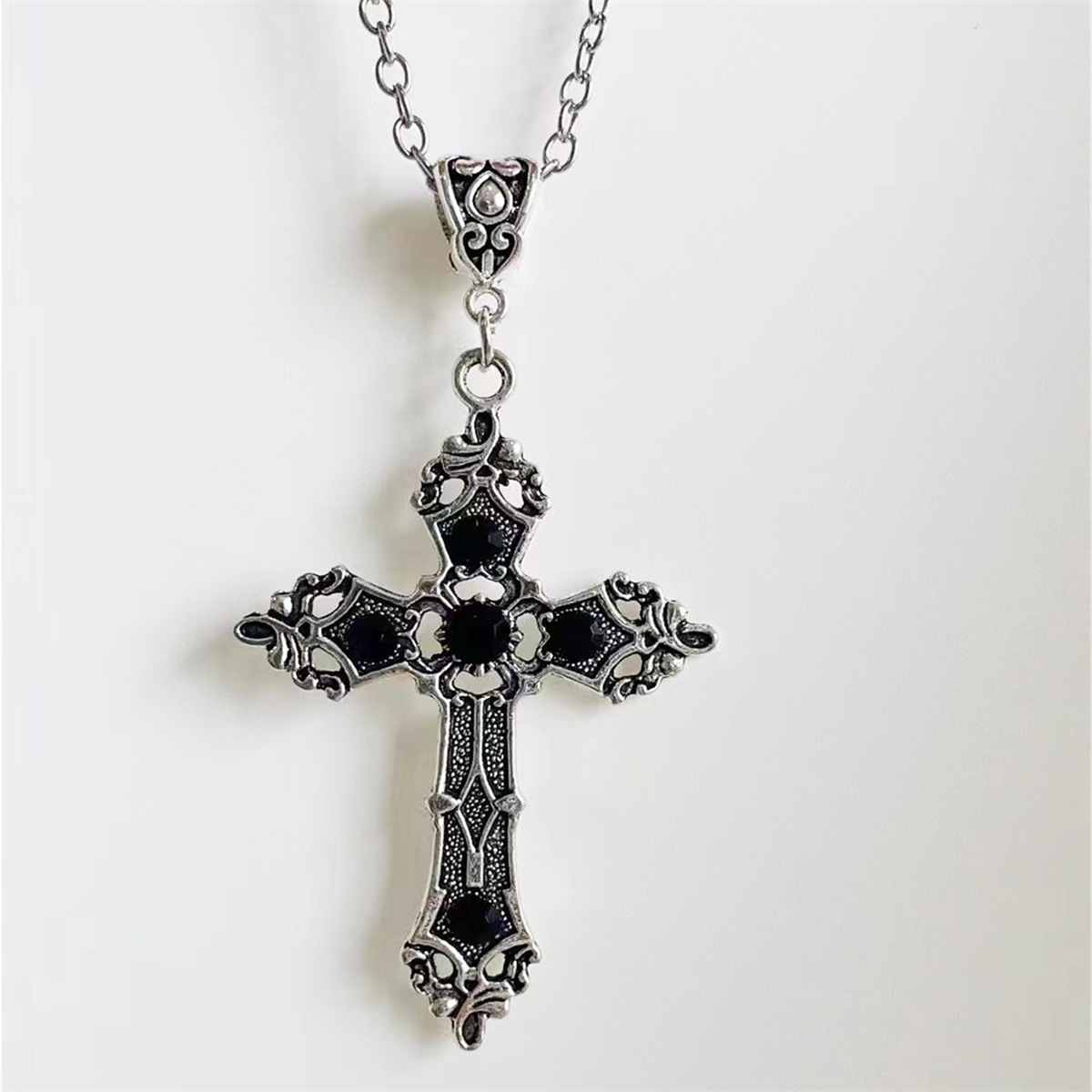 European and American Retro Simple Fashion Gothic Black Gemstone Ruby Diamond Cross Pendant Necklace for Men and Women