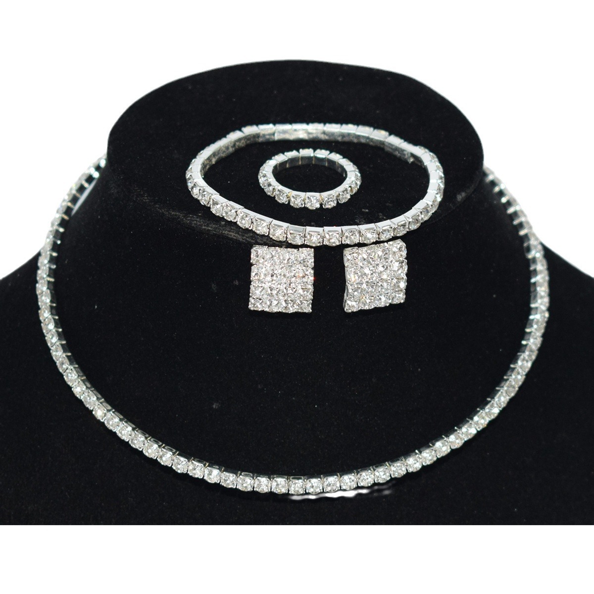 Names/名称:水钻项链手镯耳钉戒指四件套装