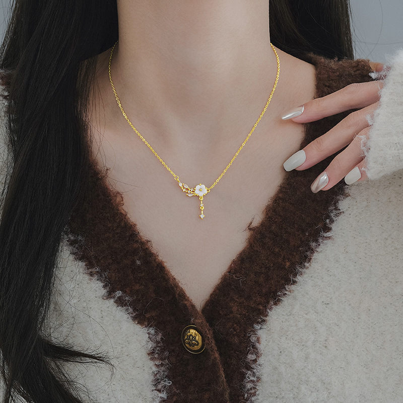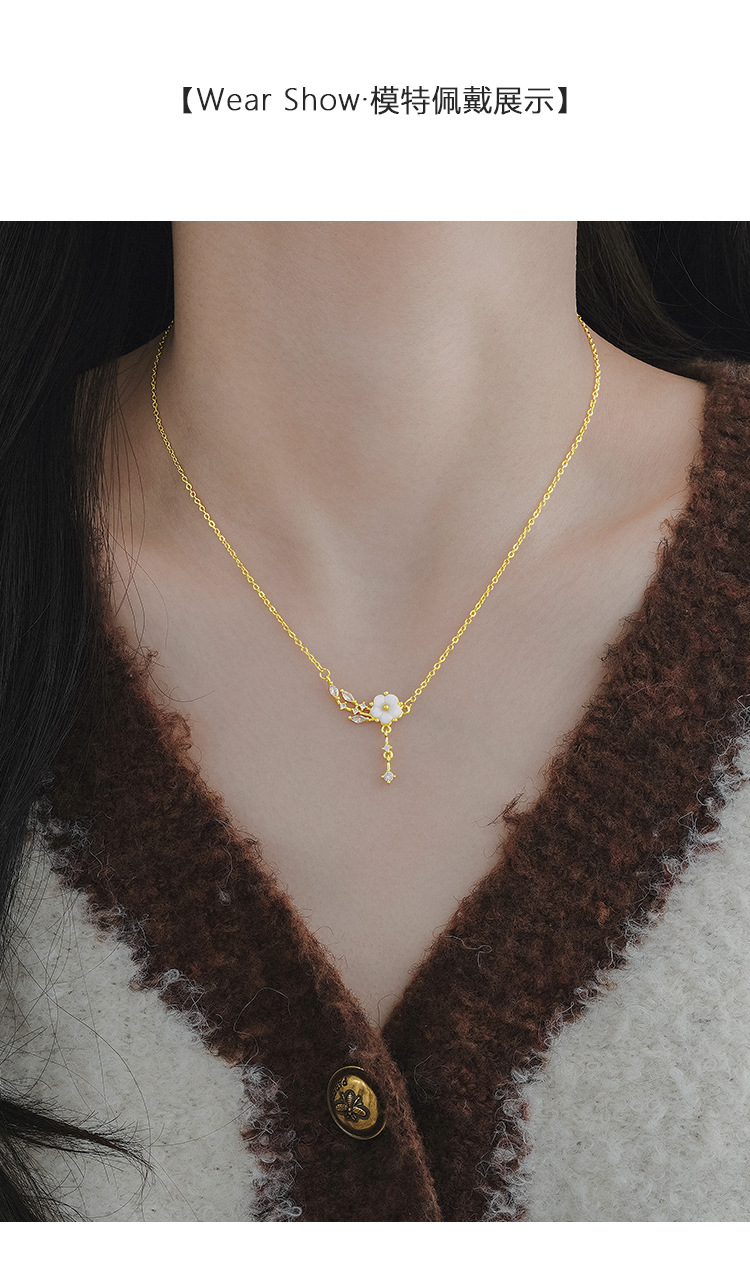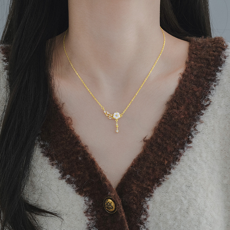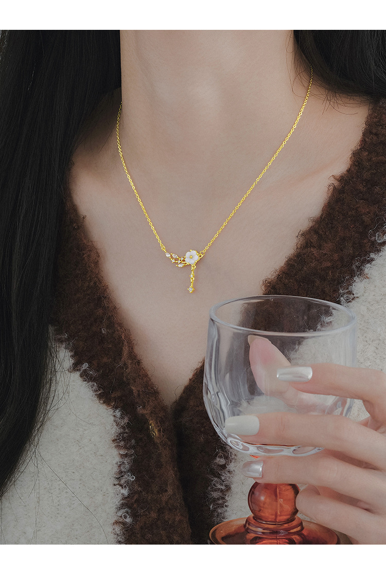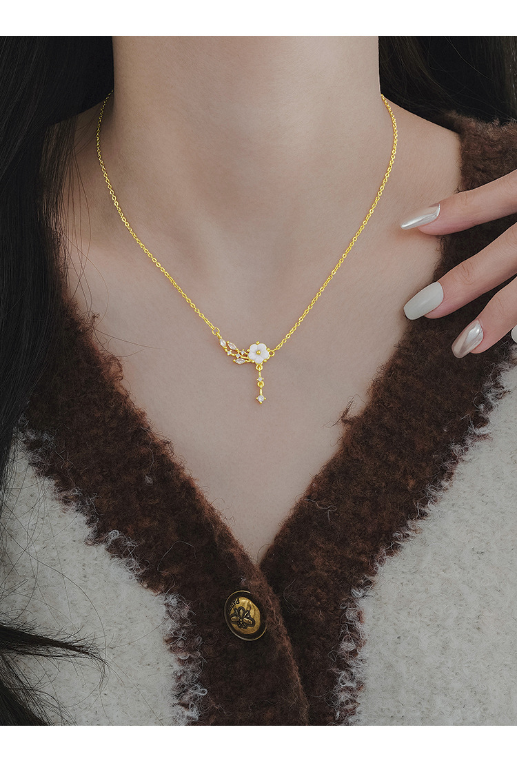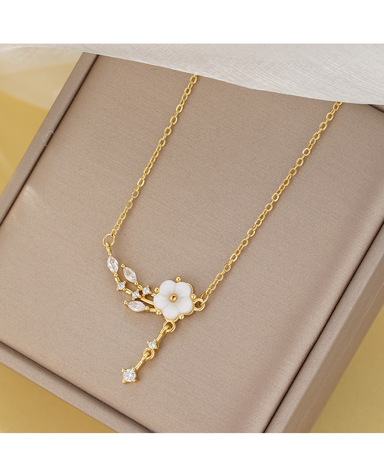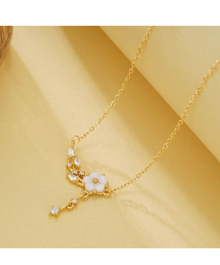 Camellia Zircon Necklace Women's 2023 New Popular Style Neck Chain Light Luxury Niche Design High-grade Clavicle Chain Trendy