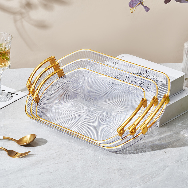 European-style Golden Rectangular Tray Fruit Tray Tea Tray Pastry Plate Cake Plate Jewelry Box Tray Plate Cake Rack