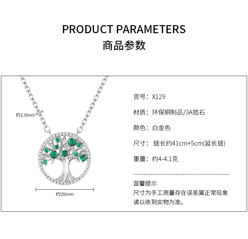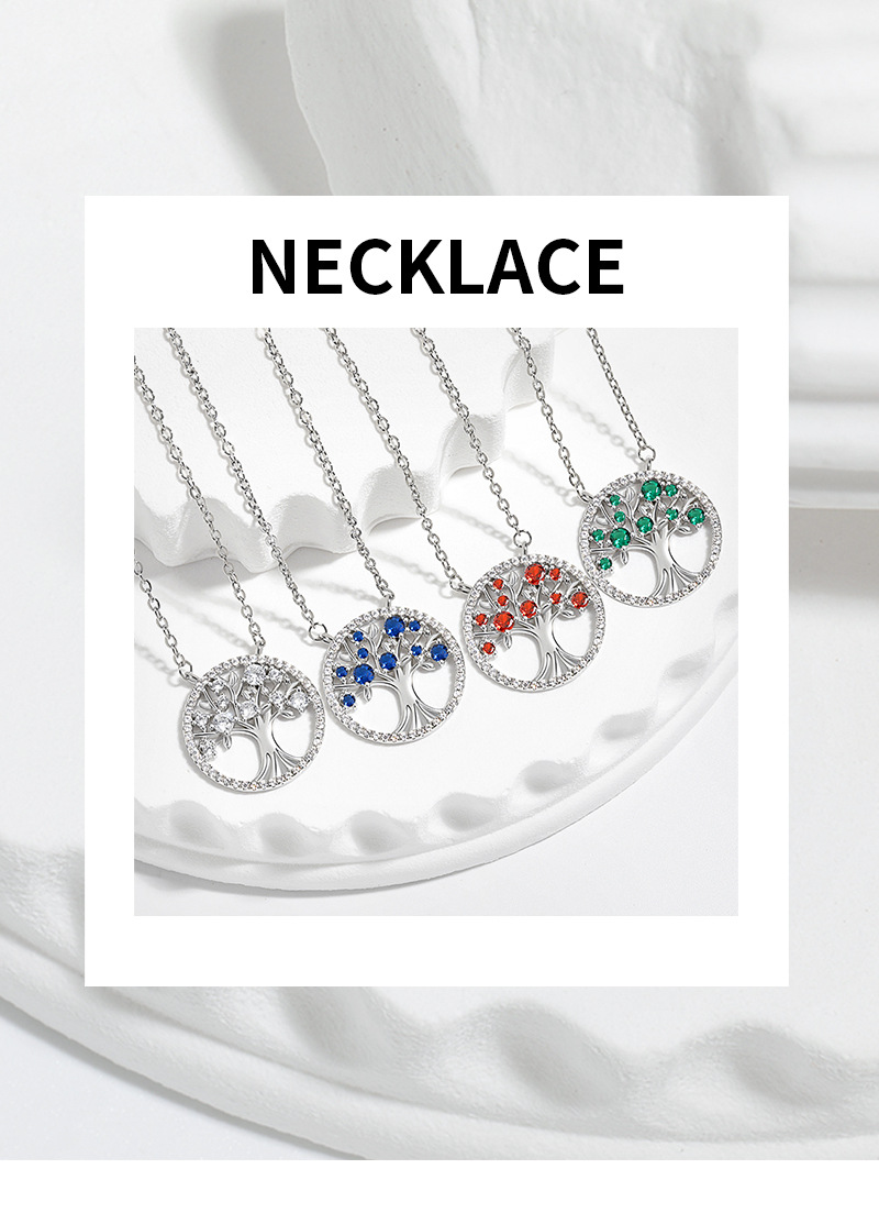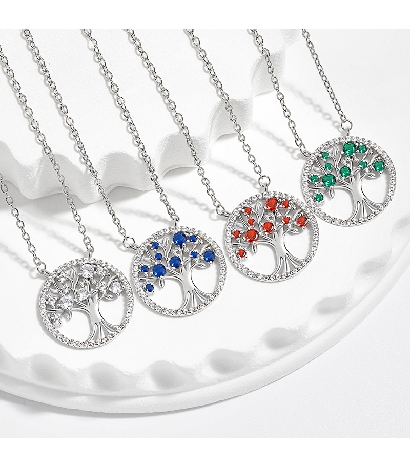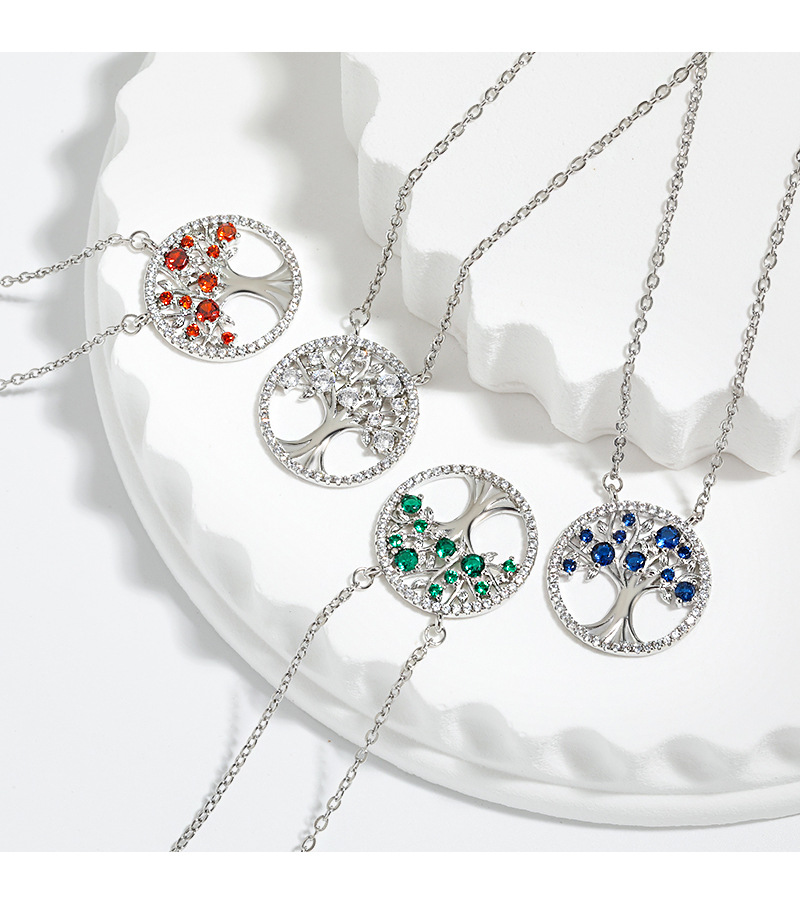Bohemian Color Zirconium Legal Necklace Female Cross-border Hot-selling Religious Belief Hollow Nature Tree of Life Necklace
