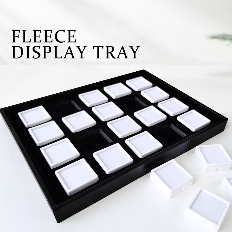 Color: 15 square boxes 3cm black box white cotton + small tray