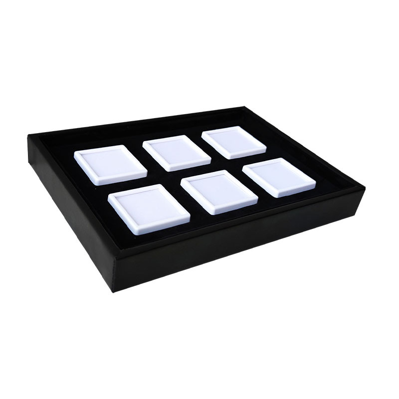 Color: 6 square boxes 4cm black box white cotton + small tray