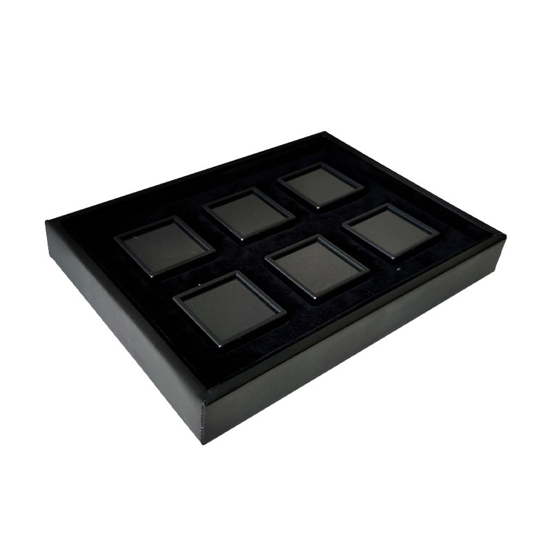 Color: 6 square boxes 4cm black box black cotton + small tray
