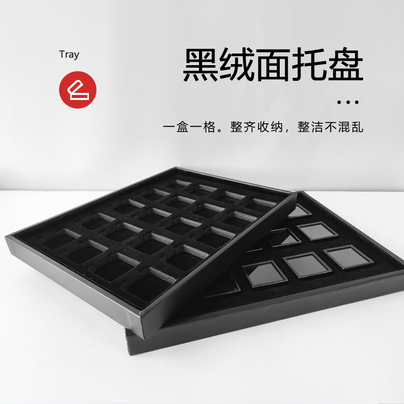 Specifications and models: 20 square boxes 4cm black box black cotton + large tray; with paper cover