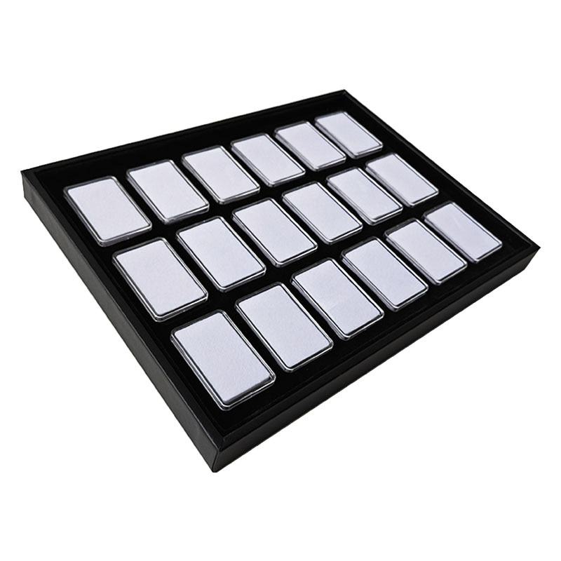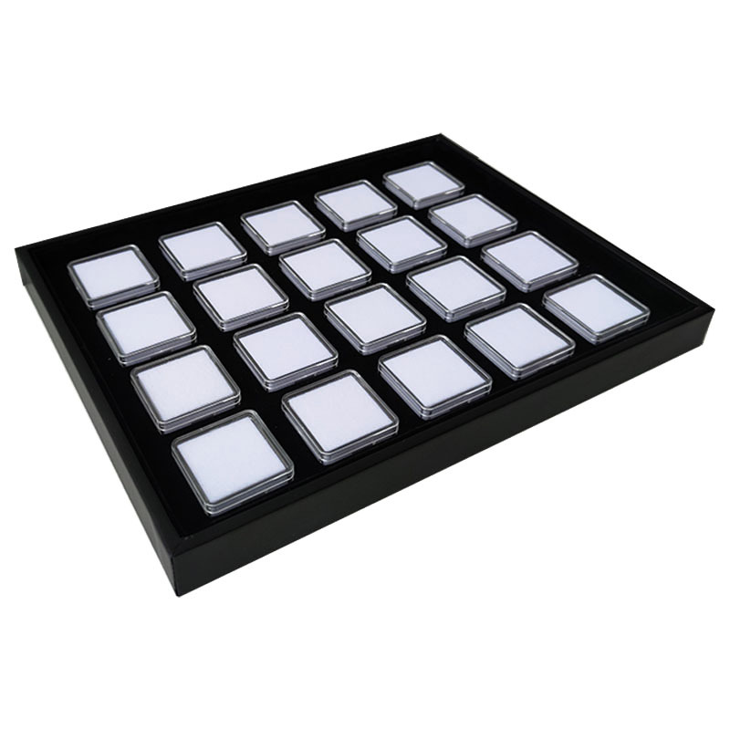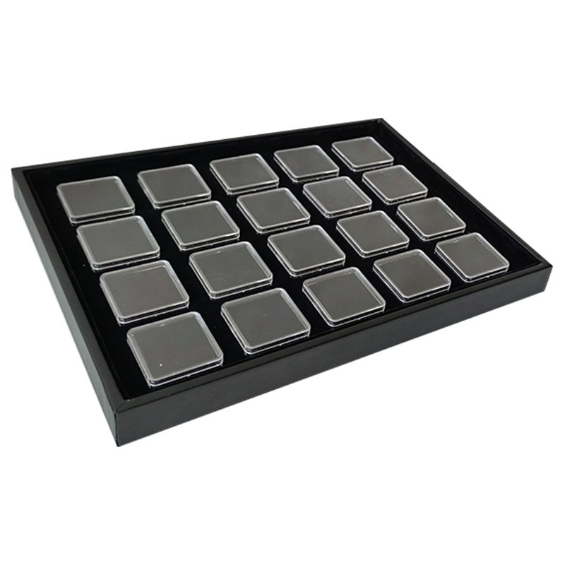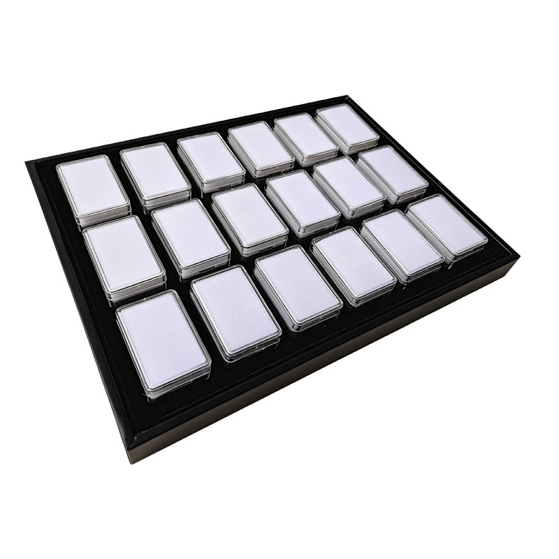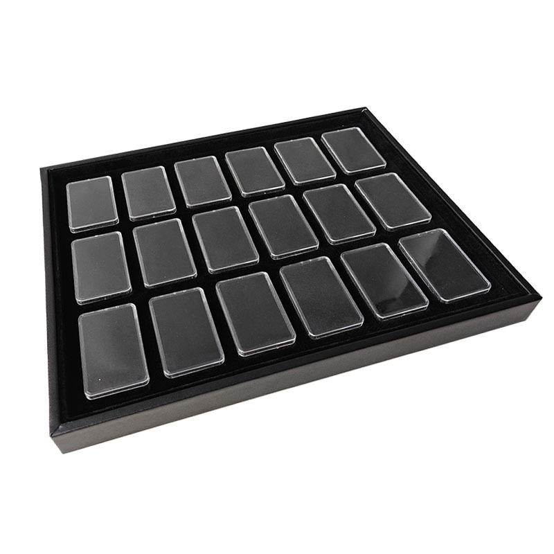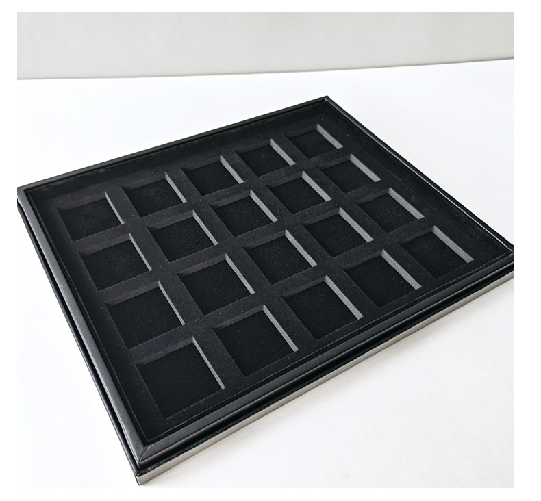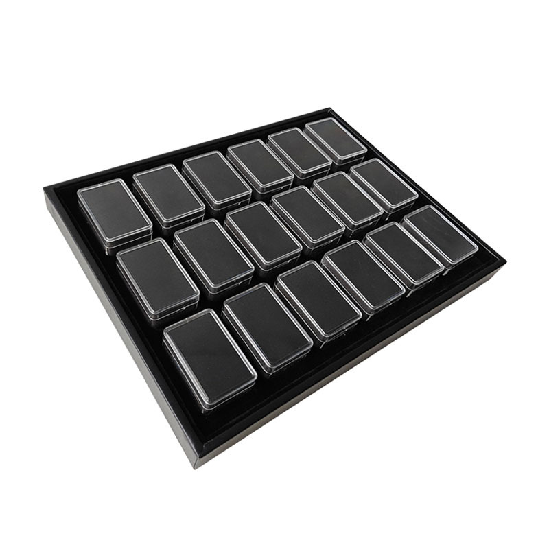 18 tall rectangular boxes with black 2-layer cotton + large tray