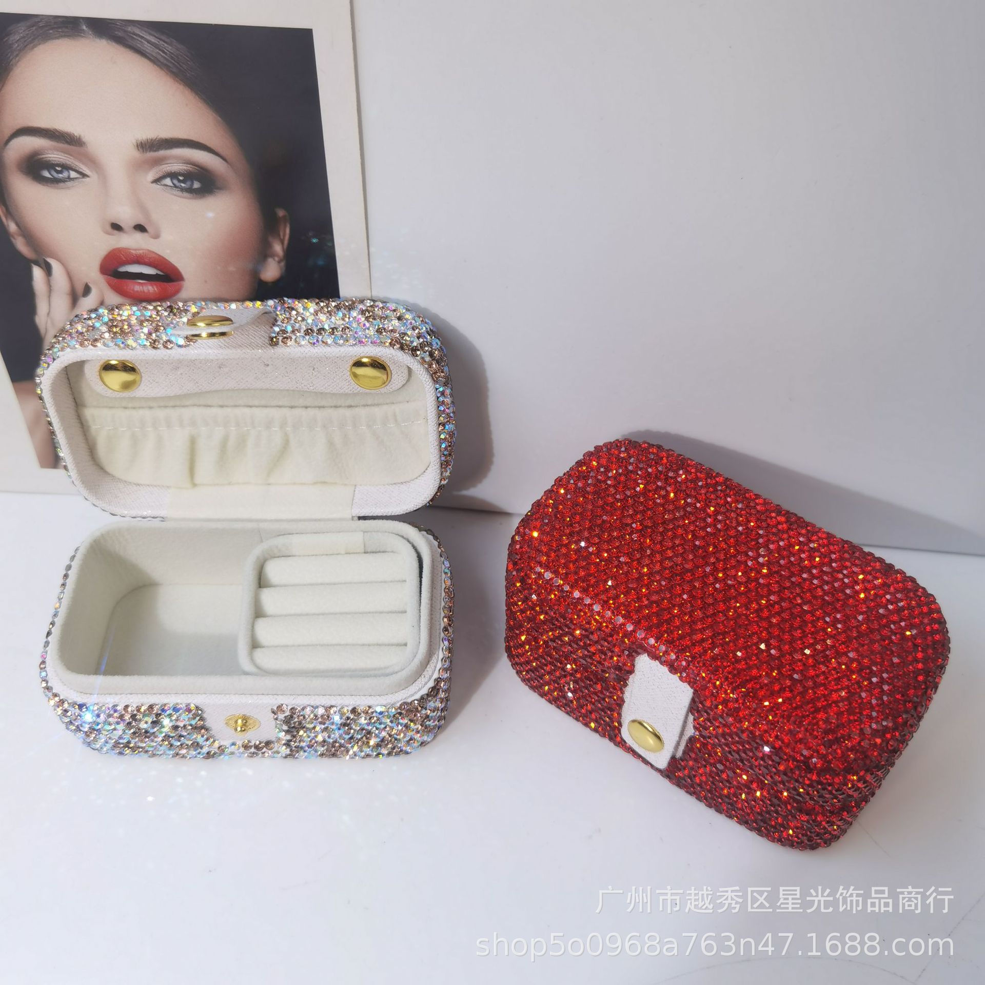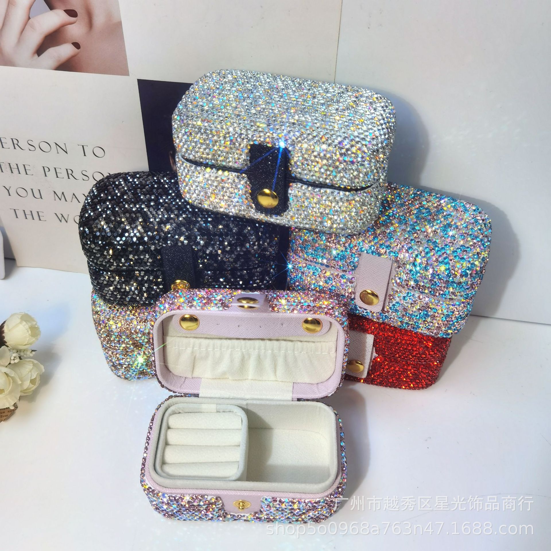 Diamond-encrusted Cute Rectangular Small Jewelry Storage Box Portable Travel Earrings Earrings Ring Lipstick Jewelry Jewelry Box