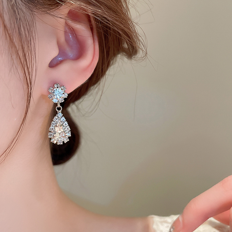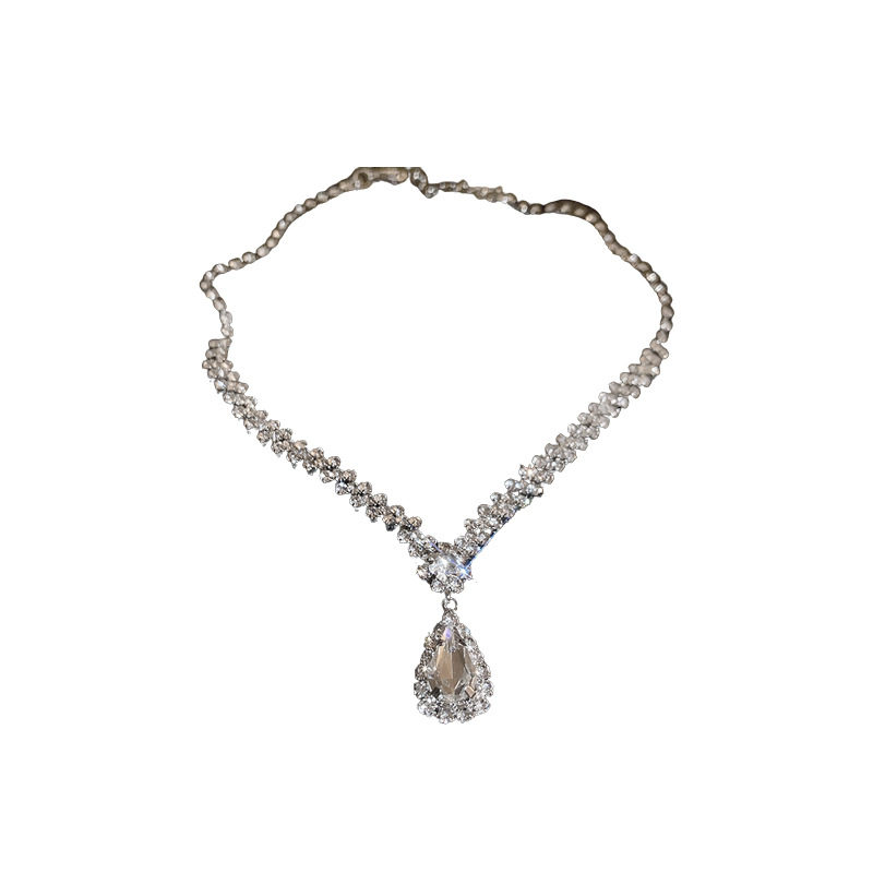 2-piece Light Luxury Diamond-encrusted Earrings Necklace Fashionable Exquisite Elegant High-grade suit Clavicle Chain Necklace for Women