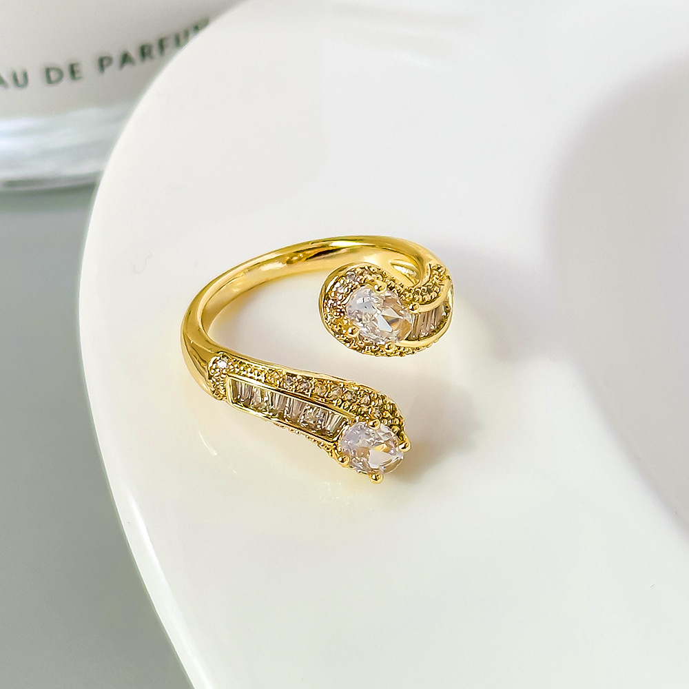 Winding Snake Shines Beautiful Summer New Style White Stone Ring Female Niche Design Personality Trend Opening Adjustable