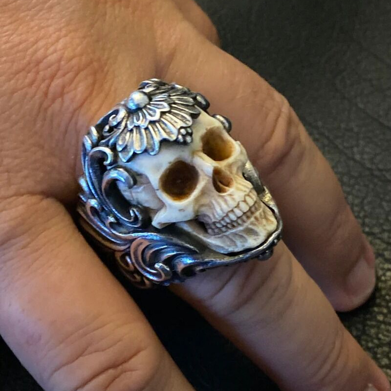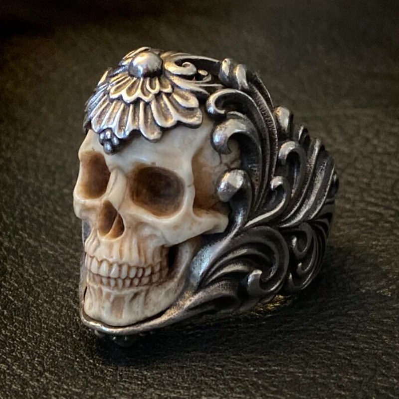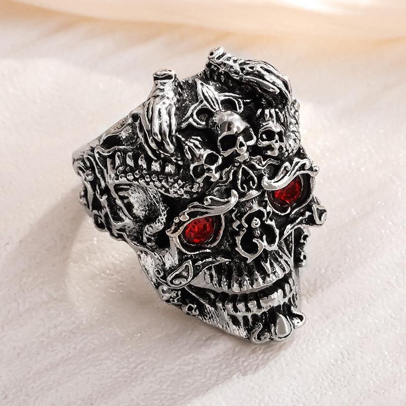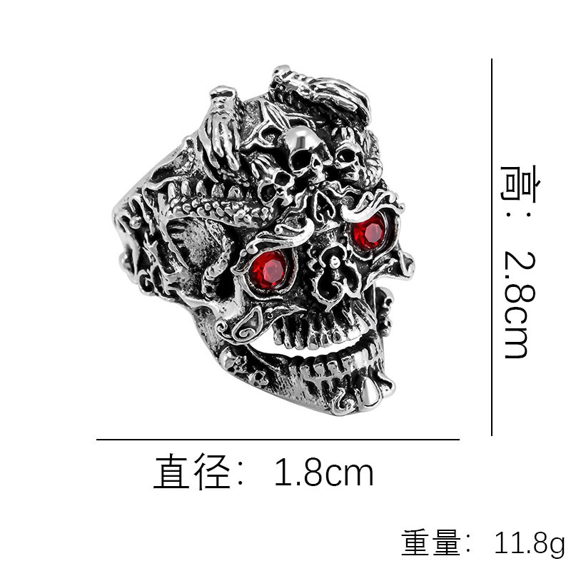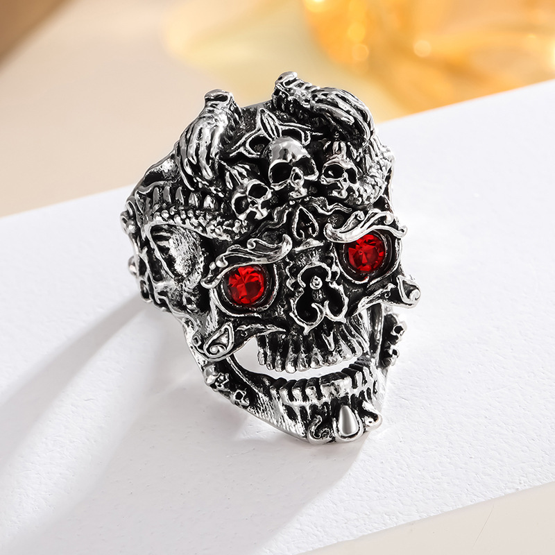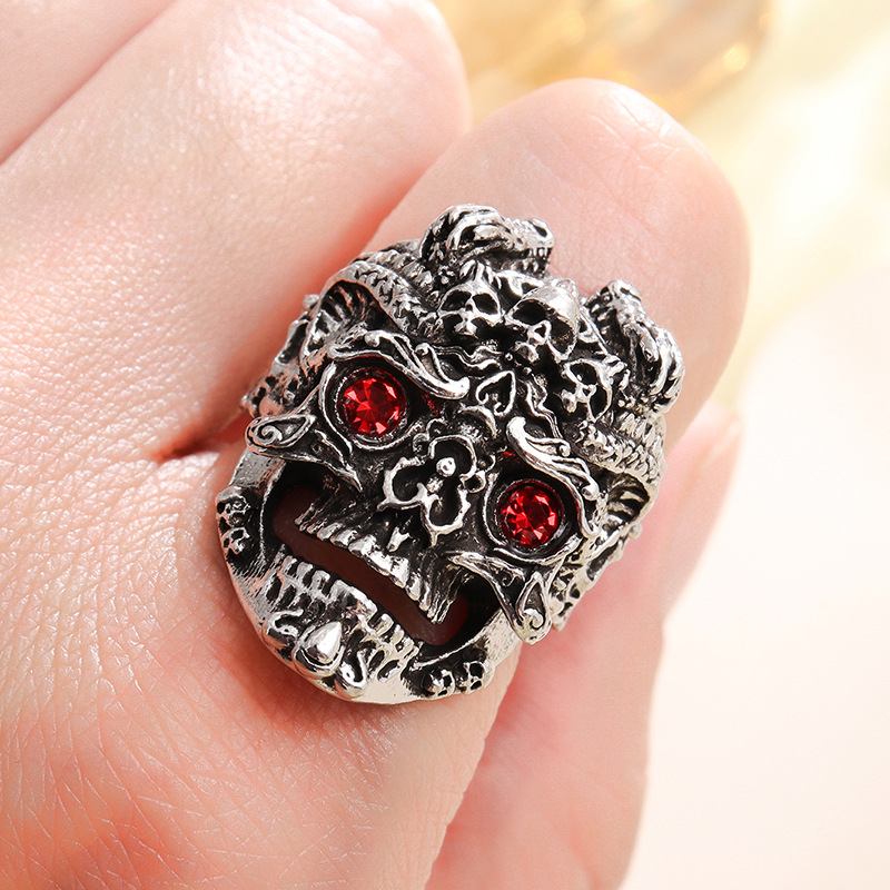 Retro Thai Silver Exaggerated Domineering Skull Finger Ring Hip Hop Fashion Halloween Men's Opening Adjustment Ring Personality