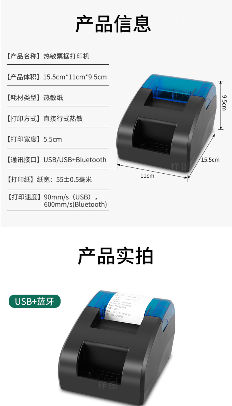 Model: Bluetooth voice version [mobile phone Bluetooth USB computer Universal] +20 rolls of printing paper, each roll is about 5 meters