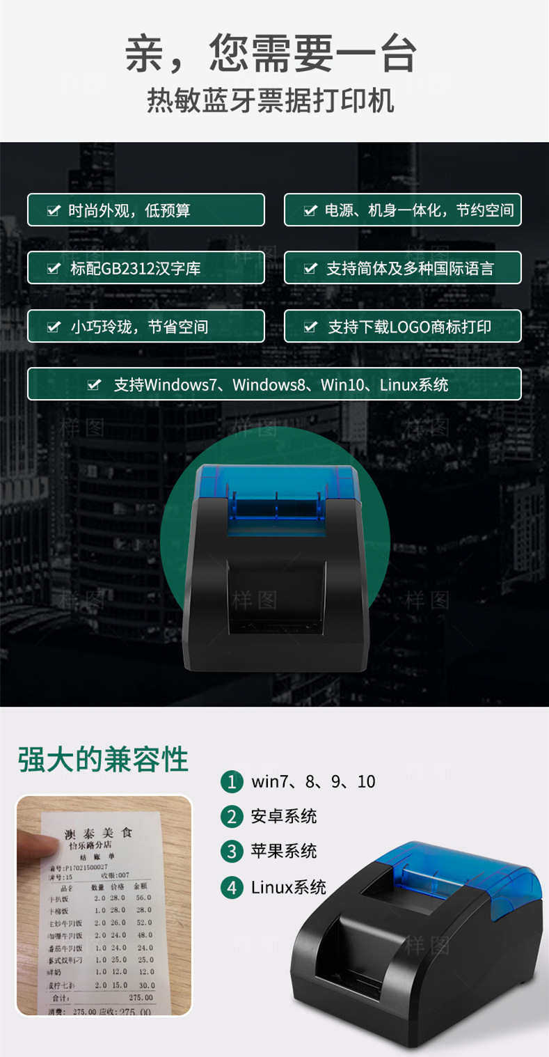 Model: Bluetooth voice version [mobile phone Bluetooth USB computer Universal] with 1 roll of printing paper