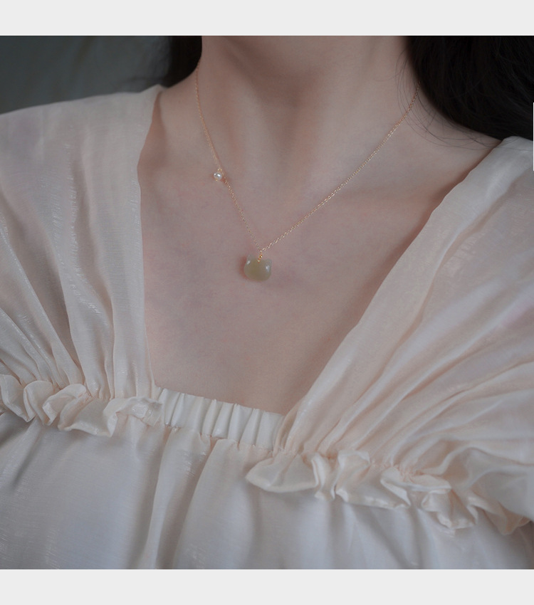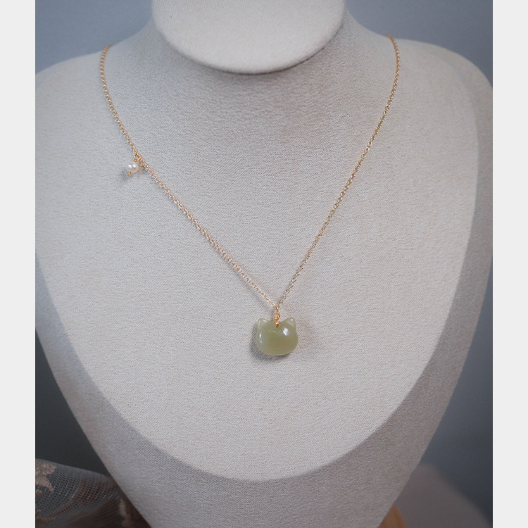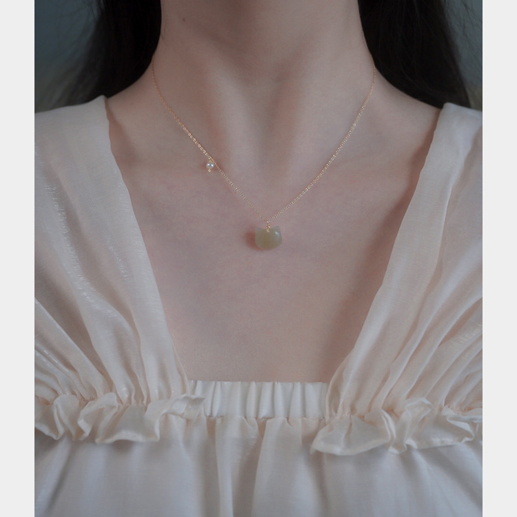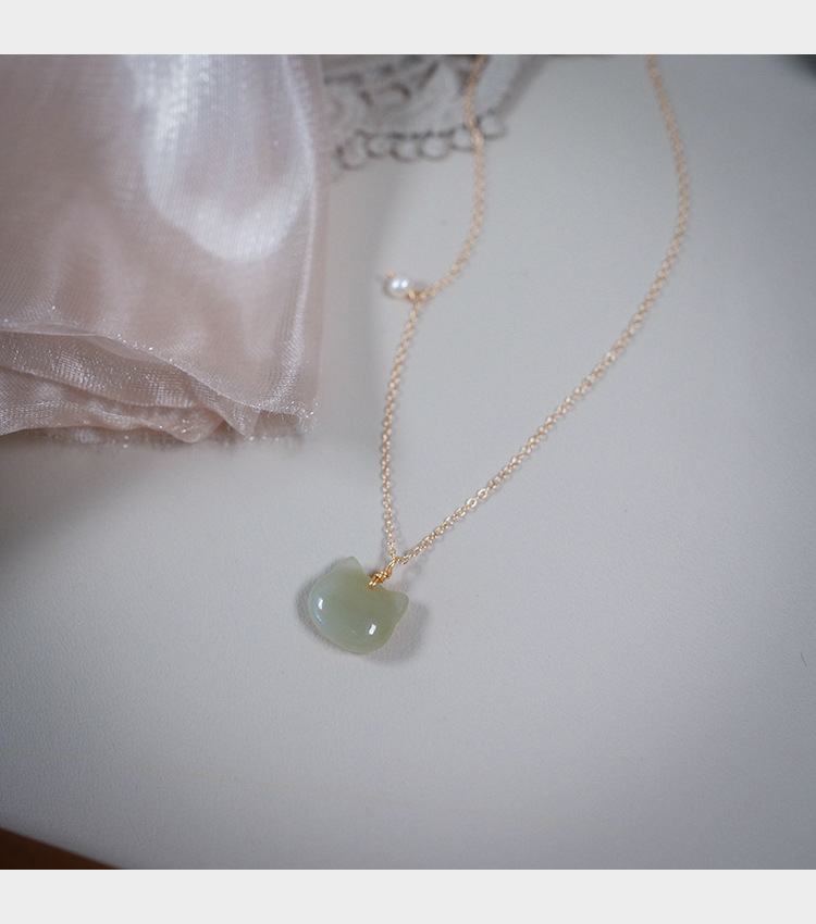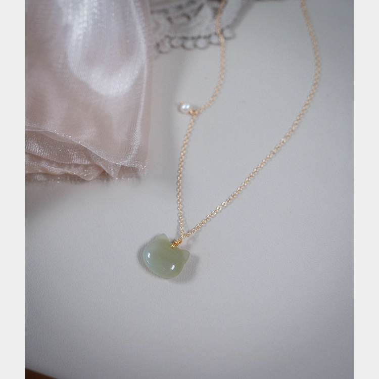 Color: 30725 Hetian jade cat pearl necklace (14K gold)