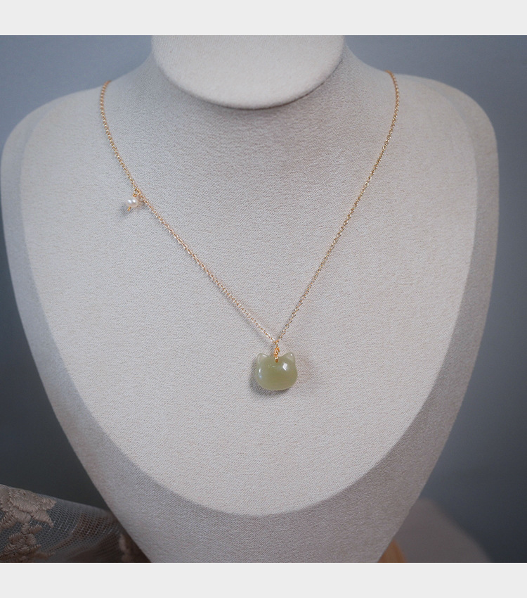 Color: 30725 Hetian jade cat pearl necklace (silver-plated)
