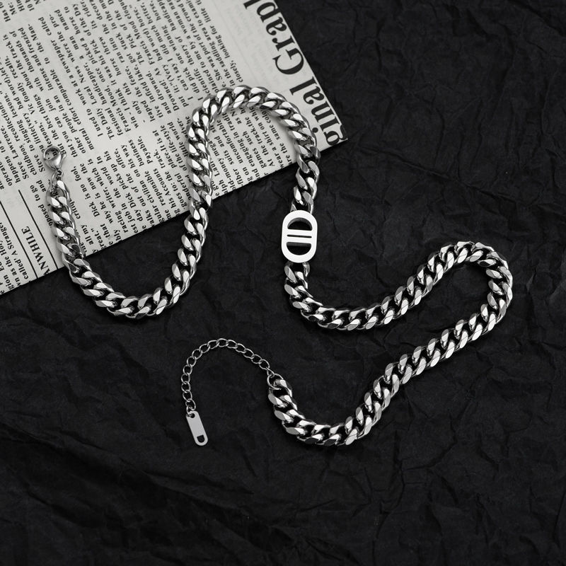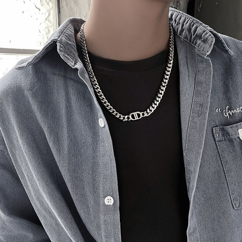 Double D Necklace Men's High-End Hip-Hop Niche Design Titanium Steel Chain Men's Trendy Brand Stylish Versatile Sweatshirt Accessories