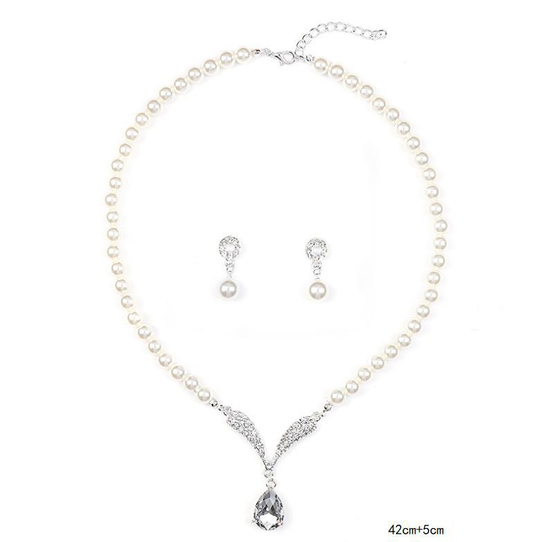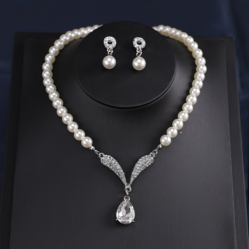 Korean Style Distinctive Pearl Necklace Earrings Set Women's Fashion Elegant Explosive Alloy Electroplated Bridal Dress Accessories