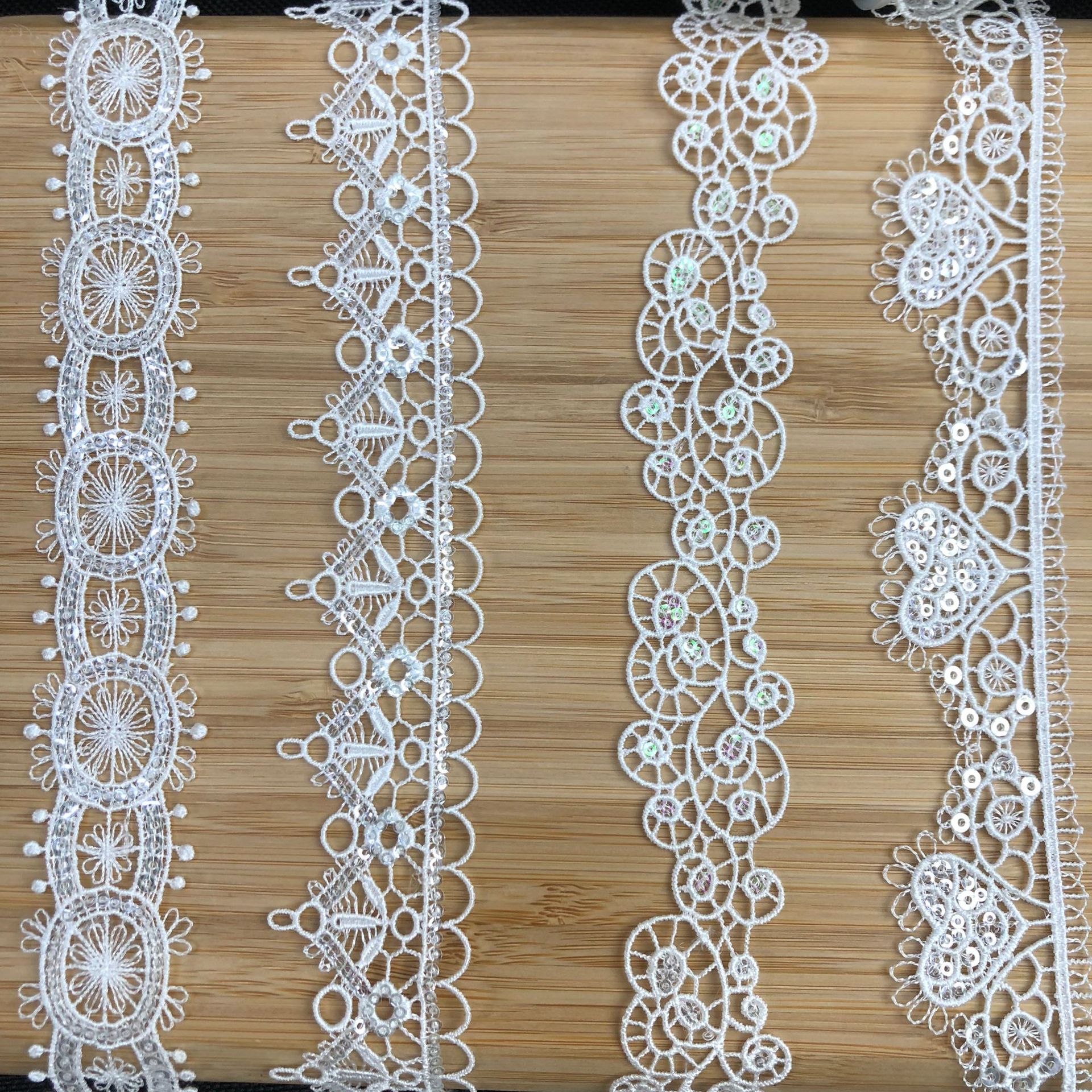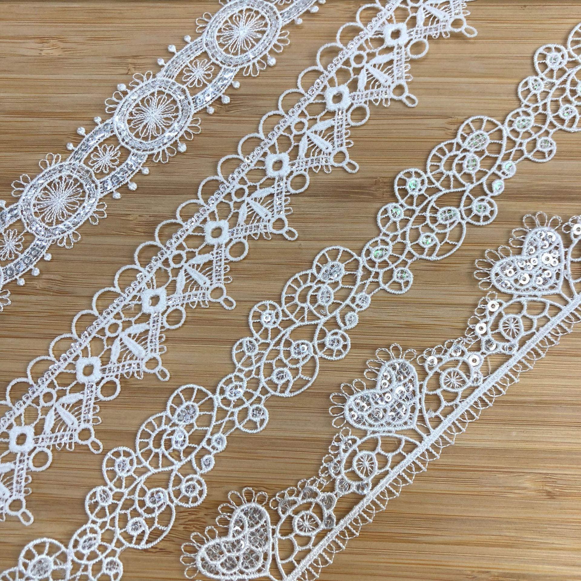 水溶蕾丝刺绣服装亮片花边批发绣花汉服织带配饰辅料1.3CM涤光刺绣水溶花边 韩系简约有光泽樱花刺绣肩带精细花边厂家批发现货