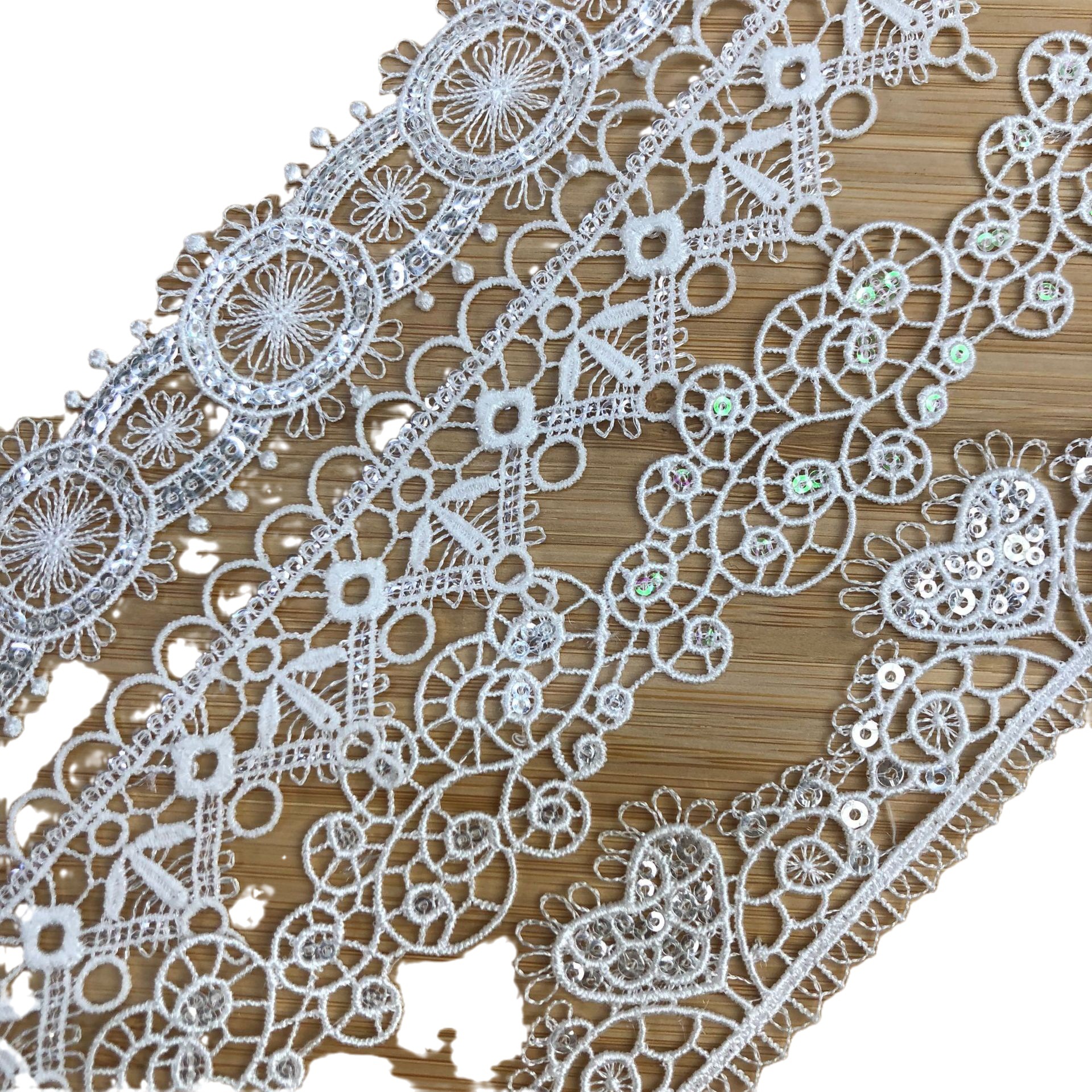 绣花边服装辅料 玩偶diy手工娃娃涤纶丝蕾丝花边潮流 21CM宽高档婚纱白色水溶蕾丝镂空刺绣鱼丝线花边绣花边服装辅料 玩偶diy手工娃娃涤纶丝