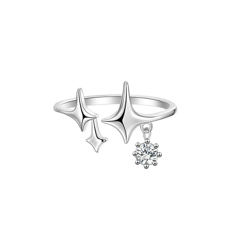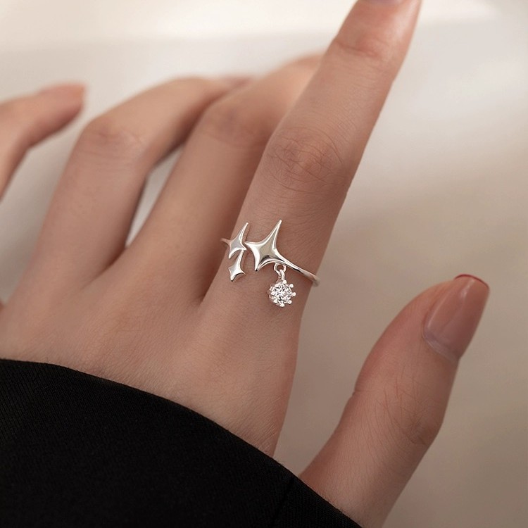 s925 Sterling Silver Four Mans Star Ring Women's ins Tide Irregular Tassel Finger Ring Opening Adjustable Zircon Tail Ring